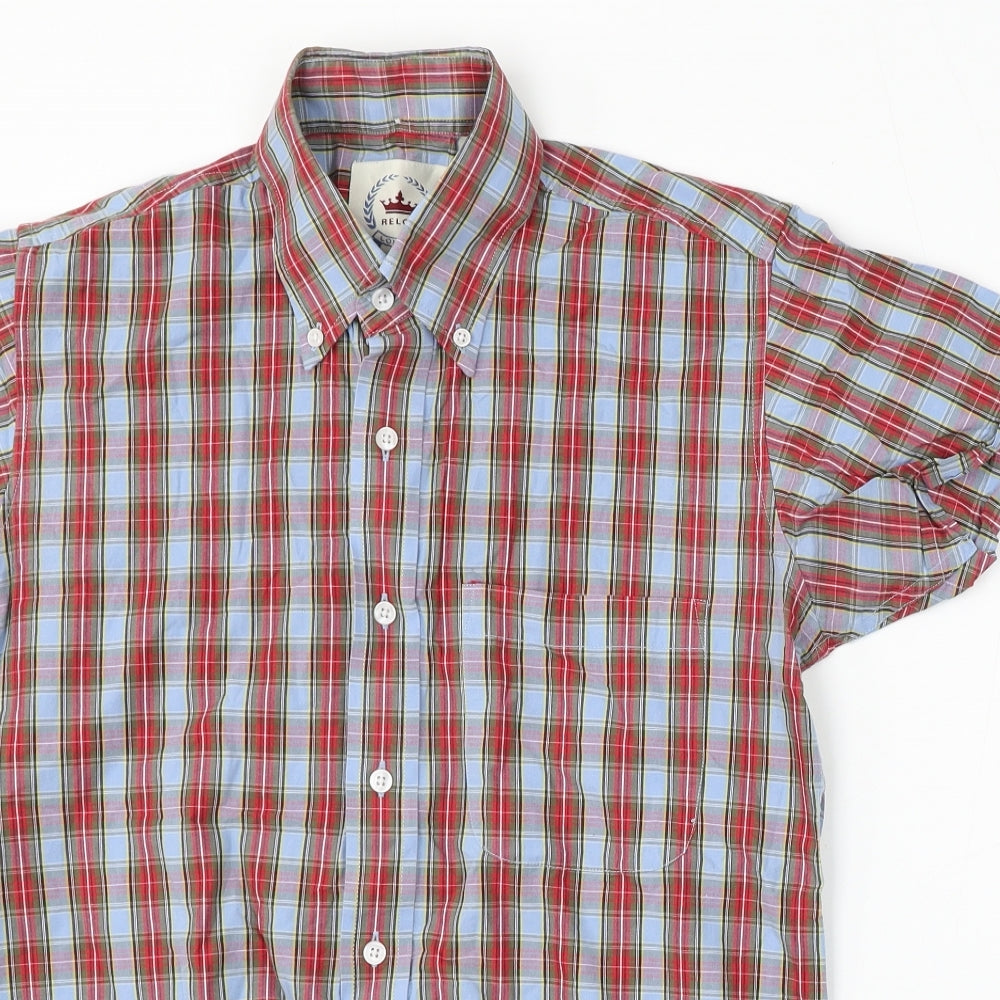 Mens Red Plaid Cotton Button-Up Size S Collared Button