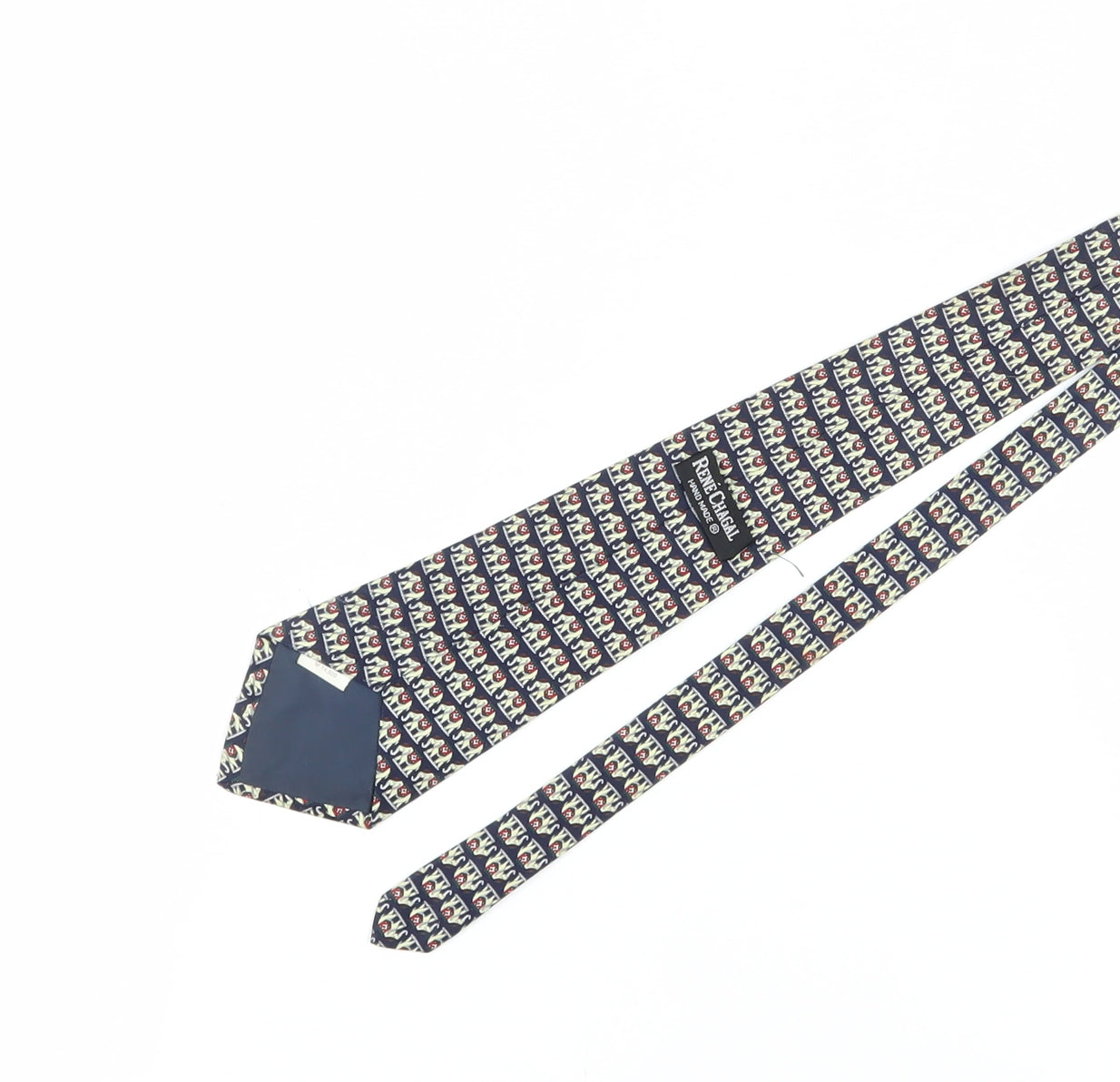 Enhance your ensemble with this exquisite René Chagal tie. Crafted from 100% silk, this eye-catching tie features a vibrant multicoloured pattern with charming animal motifs. Perfect for those seeking a blend of sophistication and unique style, this tie is handmade, ensuring quality and attention to detail. Whether for a special occasion or to add flair to your everyday attire, this accessory is a versatile addition to any wardrobe. Its excellent condition means you can enjoy a chic and durable piece that stands the test of time. Ideal for men aiming to make a statement, this René Chagal tie is both timeless and contemporary, making it an ideal gift for yourself or a loved one. Pair it with a sharp suit or a smart-casual outfit for an elevated look. Don't miss the opportunity to own this standout accessory, crafted with precision and care.