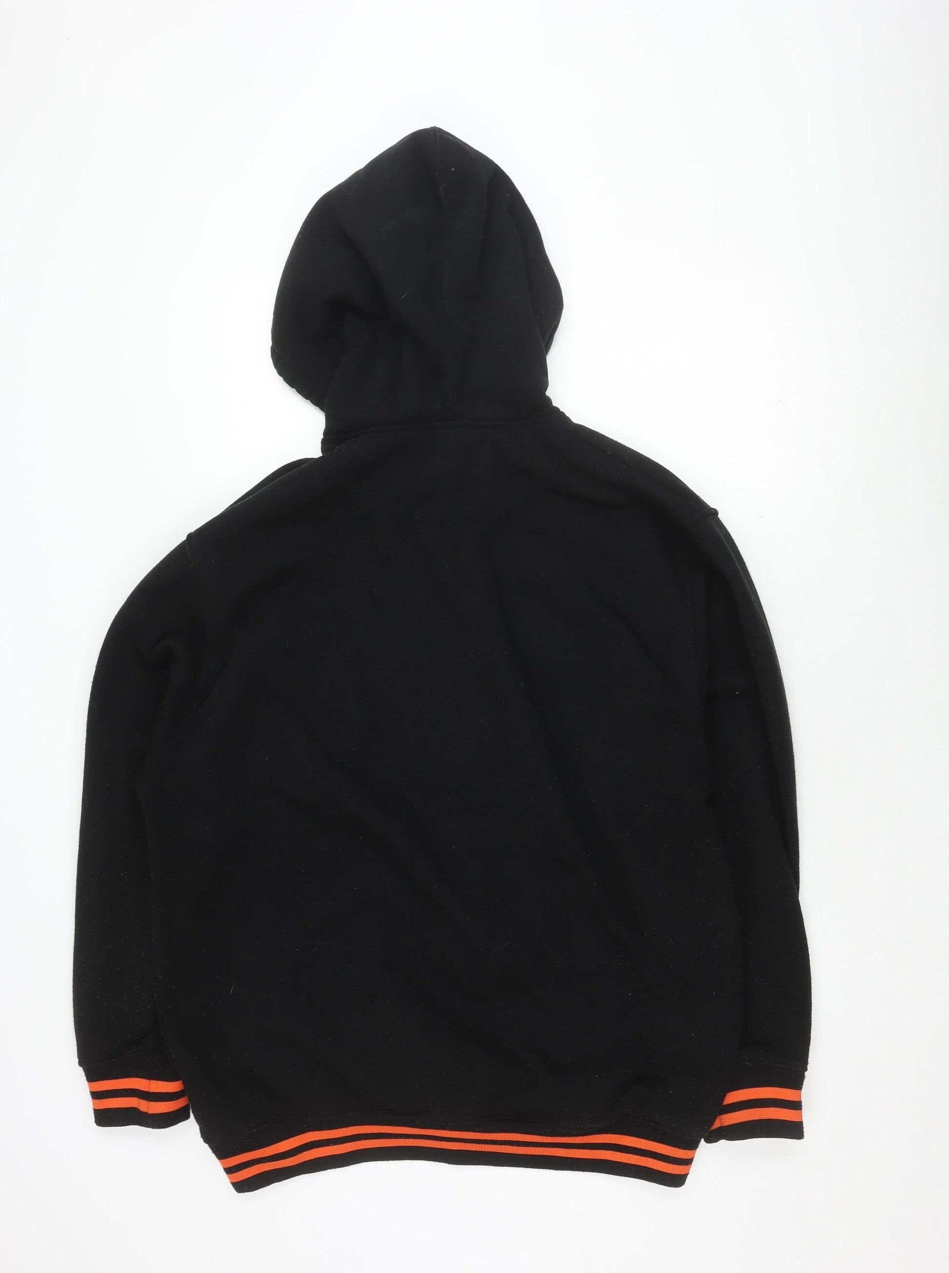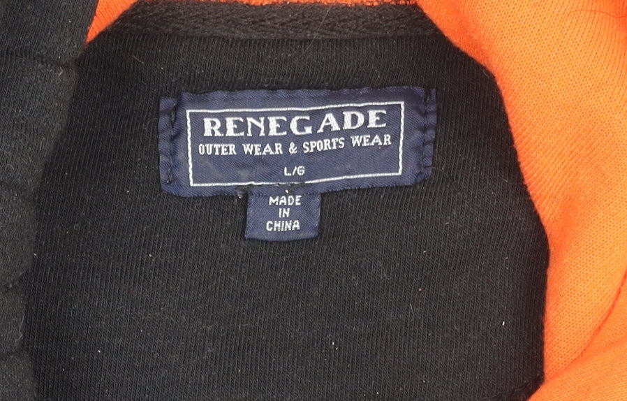 Elevate your casual wardrobe with this Renegade Men's Pullover Hoodie. Designed in a versatile black hue with sleek orange detailing, this hoodie offers a sporty edge to any outfit. Crafted for comfort, it features a classic crew neck and long sleeves to keep you cosy during the chillier months. The hoodie is adorned with a striking 'San Francisco' logo, adding a distinctive touch to your look. Its hooded design, complete with a practical drawstring closure, provides adjustable coverage. Featuring a spacious front pocket, it offers convenient storage for essentials or a warm place for your hands. This hoodie is perfect for autumn and winter wear. Made from a blend of durable materials, it's designed to withstand daily wear while keeping you comfortable. Although used, it is in very good condition with only slight signs of wear such as minimal fading, maintaining a stylish appearance. Ideal for weekend outings, casual meet-ups, or lounging at home, this hoodie blends functionality with style effortlessly. Don't miss out on adding this versatile piece to your collection.