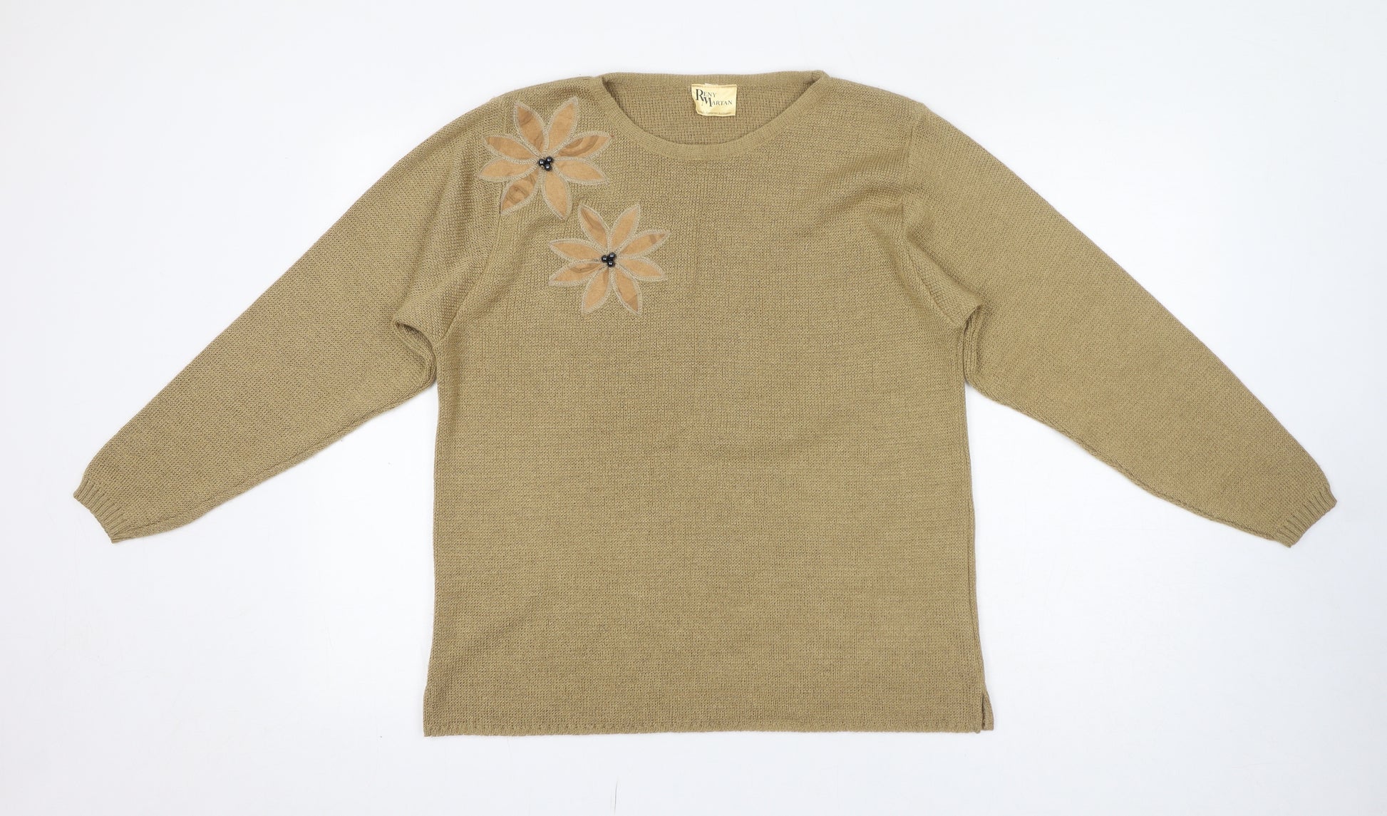 Womens Beige Round Neck Acrylic Pullover Jumper Size 14