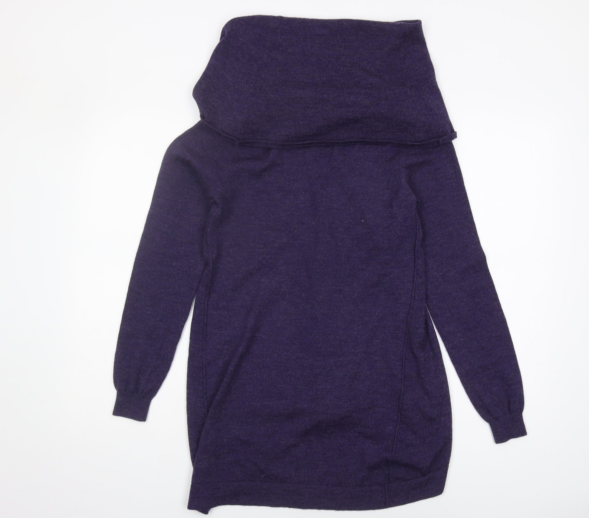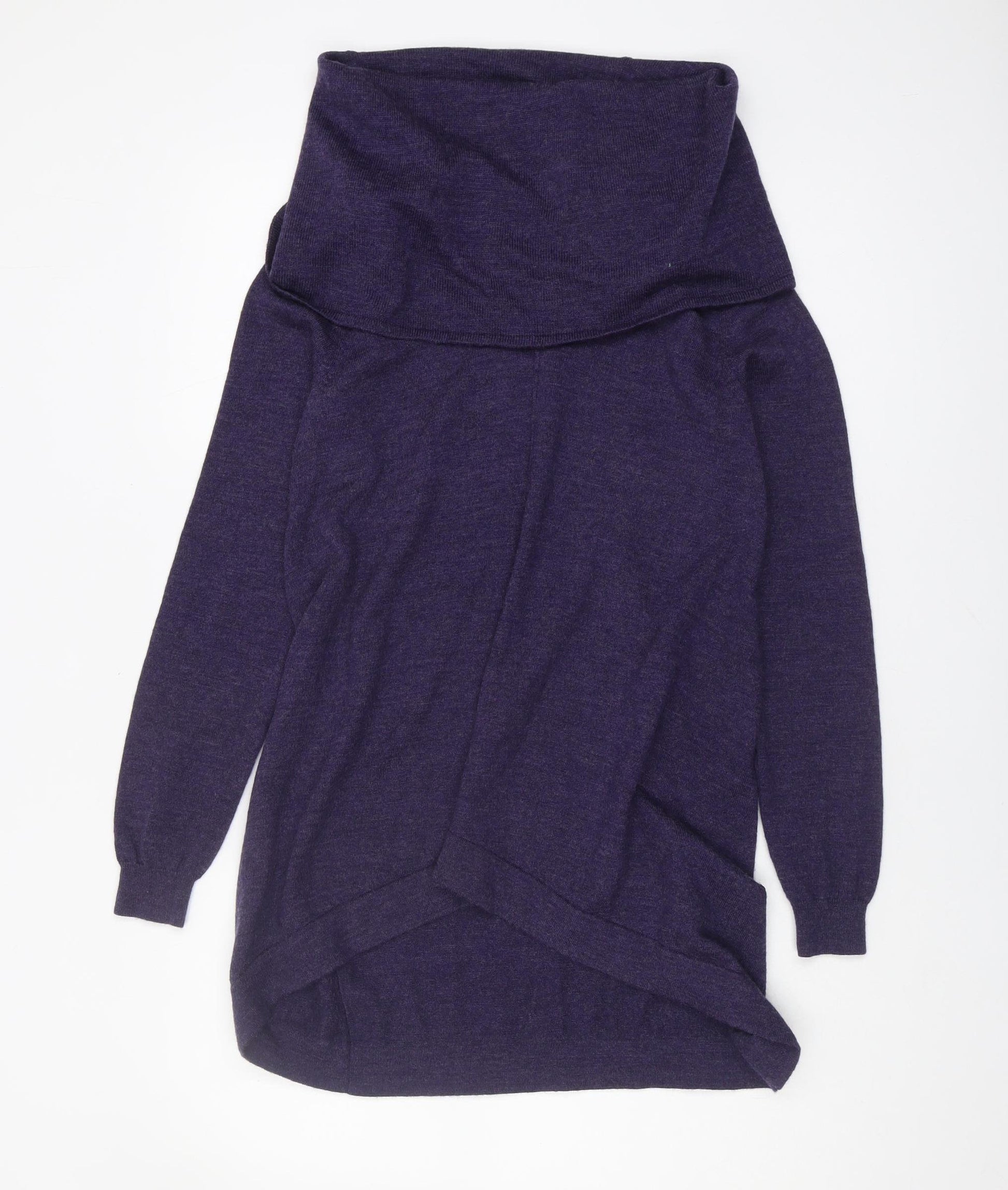 Women's Purple Cowl Neck Merino Wool Jumper Size 8
