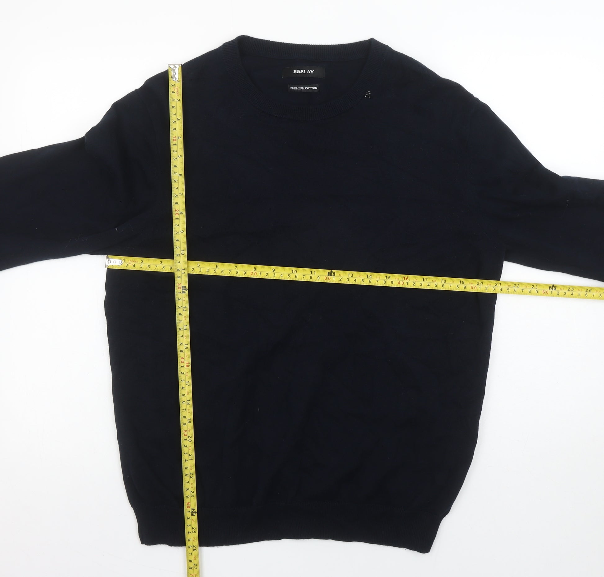 Add a timeless staple to your wardrobe with this Replay Men's Black Cotton Crew Neck Jumper in size L. Crafted from 100% premium cotton, this lightweight pullover offers superior comfort and breathability, perfect for layering or wearing on its own. Designed in a sleek, tight-knit finish, it provides a smart yet casual look suitable for multiple occasions. The minimalist style features long sleeves, ribbed cuffs and hem, and a classic crew neckline that keeps it versatile for both casual and semi-formal outfits. The solid black colour ensures it pairs effortlessly with jeans, chinos, or tailored trousers, making it an essential piece for any season. Made to Replay’s high-quality standards, this jumper guarantees durability and softness wash after wash. Its breathable cotton construction makes it ideal for year-round wear — enjoy its comfort in spring, autumn, or as a layering piece through winter. With no visible flaws, stains, or damage, the jumper is presented in excellent used condition, showing only minimal signs of previous wear. Machine washable for easy care, this jumper brings both practicality and sophistication to your everyday style. Whether you’re dressing for a day at work, a relaxed weekend, or an evening out, this Replay cotton jumper provides an effortlessly stylish look with lasting comfort.