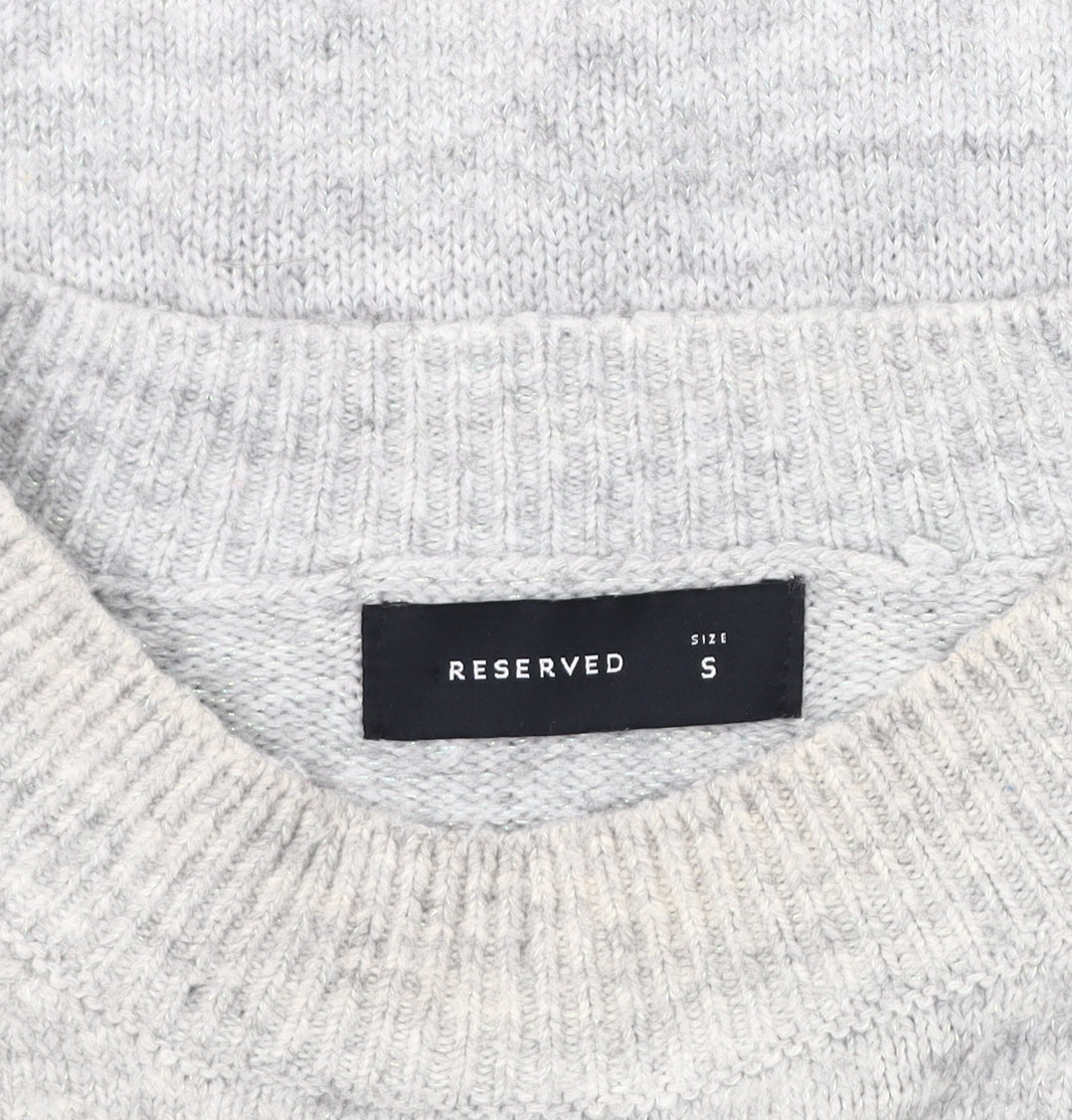 Elevate your wardrobe with this classic grey jumper from Reserved, perfect for any casual occasion. Designed with a comfortable crew neck and crafted from a blend of acrylic, polyester, and metallic fibre, this pullover offers both style and warmth. Its cable-knit texture adds a touch of sophistication, making it a versatile piece for all seasons. Available in size S, this regular fit jumper ensures a cosy and relaxed wear, ideal for both men and unisex adults. Machine washable for easy care, it’s the perfect addition to your everyday essentials. Don't miss out on this stylish and affordable option to refresh your collection.
