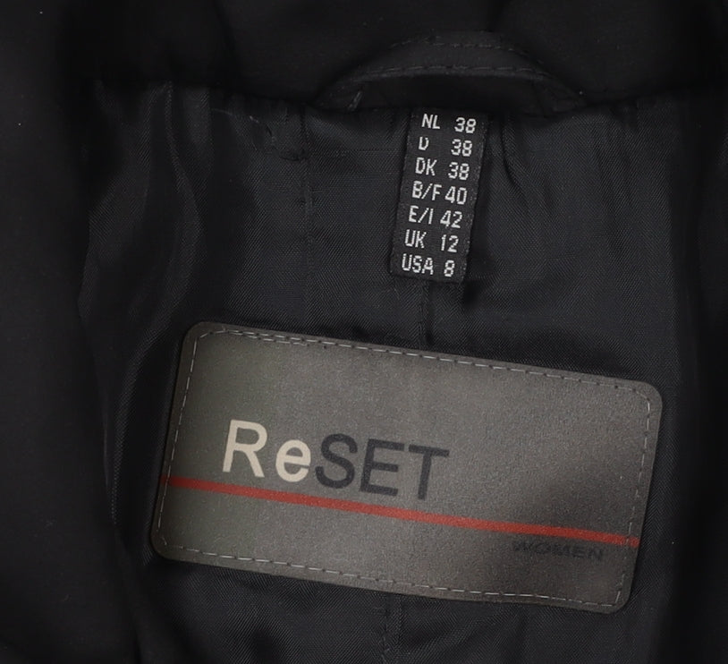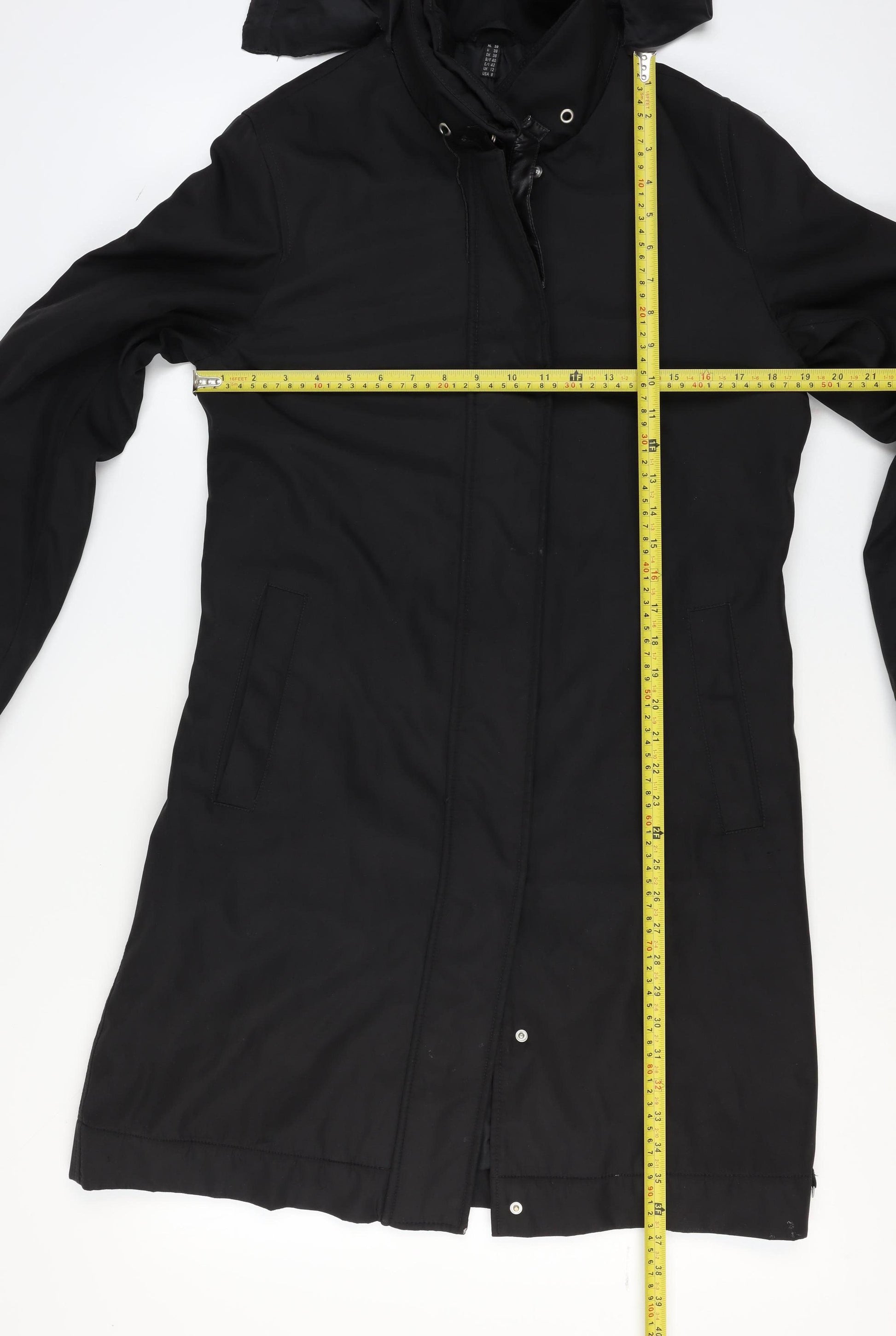Stay effortlessly stylish and dry through every drizzle with this ReSET Women’s Black Hooded Waterproof Long Rain Coat in size 12. Designed for both practicality and sophistication, this coat offers durable weather protection with a classic silhouette that flatters any figure. Constructed from high-quality polyester, the fabric provides effective water resistance while maintaining breathability and lightweight comfort. The coat’s full front zip closure is reinforced with concealed buttons for added protection against wind and rain, while the adjustable hood ensures full head coverage when the weather turns. Functional side pockets provide ample space to keep your essentials secure and your hands warm. The interior is fully lined with smooth polyester for comfort and ease of layering, making it ideal for everyday wear through the transitional seasons of autumn, spring, and winter. The simple, minimalist design in timeless black allows this rain coat to pair effortlessly with both casual and smart outfits, whether you're heading to work, travelling, or stepping out for weekend adventures. The long cut offers additional protection from the elements, keeping you warm and dry without sacrificing mobility. Suitable for regular fit wearers, this piece combines modern practicality with understated elegance. Although lightly used, with only small marks visible on the lower back, the coat remains in good overall condition with plenty of wear left. Perfect for versatile styling and everyday reliability, this piece is a wardrobe essential for those who value comfort and classic fashion in unpredictable weather. Combine it with jeans, trousers, or dresses for a refined, weather-ready look that transitions seamlessly from day to night.