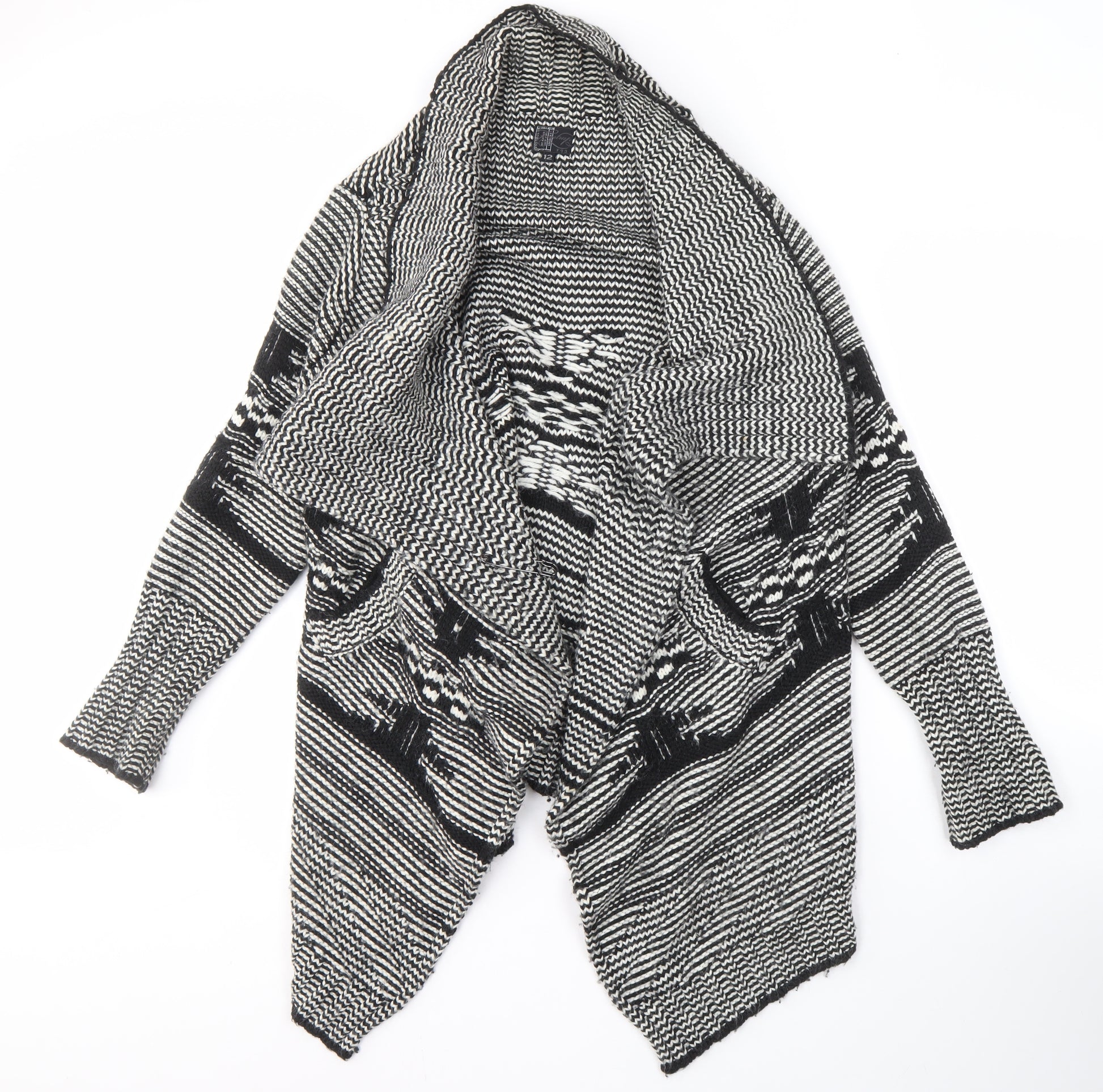 Women's Black Geometric Open Front Cardigan Size 12