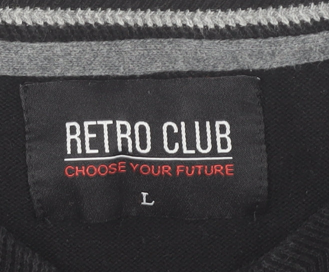 This Retro Club men’s V-neck pullover jumper is a versatile piece that combines comfort, practicality, and style in one. Crafted from a quality cotton and polyester blend (65% cotton, 35% polyester), it offers the softness and breathability of cotton with the durability and shape retention provided by polyester. The result is a jumper that feels comfortable on the skin while maintaining its structure, making it an ideal everyday essential.Designed in a crisp black shade, this jumper allows for a wide range of styling options, whether worn alone for a smart-casual appearance or layered over a shirt for a sharper, office-ready look. The V-neck design is both classic and flattering, adding a touch of refinement without being overly formal. Finished with a subtle chest logo accent, it provides just the right amount of detail while maintaining a clean and understated aesthetic.This knit is lightweight yet warm, featuring a tight weave that lends itself to year-round wear, particularly during the transitional seasons of autumn and spring, as well as in winter with layering. Its long sleeves and ribbed cuffs ensure a secure and comfortable fit that locks in warmth. The Regular fit ensures ease of movement, making it suitable for daily wear whether at work, while travelling, or during casual occasions.The Retro Club jumper stands out not only for its stylish look but also for its practicality. Being machine washable means it is easy to care for and fuss-free, which is perfect for the modern lifestyle. While it is pre-owned, the condition is very good, with only light linting visible, allowing you to enjoy a high-quality garment at excellent value.Ideal for casual and workwear occasions, this black V-neck jumper is the type of staple you will reach for repeatedly, thanks to its versatility and timeless appeal. Whether you are dressing it up with formal trousers or down with jeans, it promises to remain an adaptable and reliable wardrobe option. A must-have for men seeking a balance of comfort, durability, and classic style.
