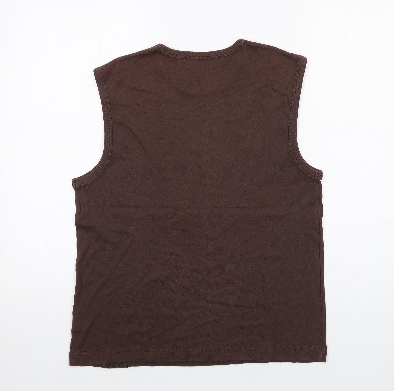 Womens Brown Cotton Basic Tank Size XL Round Neck