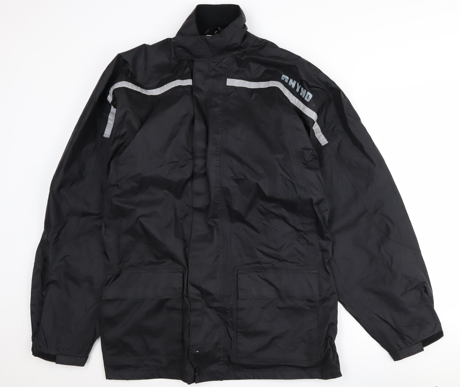 Stay dry and visible in style with this Rhyno Men's Black Reflective Rain Coat. Perfectly designed for casual outings, this jacket offers a blend of functionality and comfort, making it an excellent addition to your wardrobe. Crafted from durable nylon and PVC materials, it ensures excellent weather resistance, keeping you protected from rain and wind. The jacket's reflective accents add a touch of safety, enhancing visibility during low-light conditions, ideal for evening strolls or early morning commutes. The stand-up collar provides extra protection against the elements, while the zip closure promises ease of use and convenience. Inside, the coat features a nylon lining for added comfort, catering to all-day wear without compromising on style. Committed to practicality, this jacket is equipped with multiple pockets, offering ample space to store your essentials safely and securely. Whether you’re heading out for a casual day or preparing for unexpected weather, this raincoat adapts seamlessly to your needs. Available in a regular fit, it caters to a broad range of movements and activities. This piece, sized large, fits comfortably, promising ease of layering with your favourite outfits. Despite a few marks on the fabric, the jacket remains in good condition, ready to serve as a reliable companion during any unpredictable weather. Grab this essential outerwear piece today and embrace the blend of practicality and style it brings. Perfect for anyone who values safety, functionality, and timeless design, this Rhyno jacket is a worthy investment, especially for those who spend ample time outdoors. Machine washable, it ensures easy maintenance, ready to tackle any of your adventures. Don't miss out on this versatile and efficient rain jacket, tailored for the modern man.