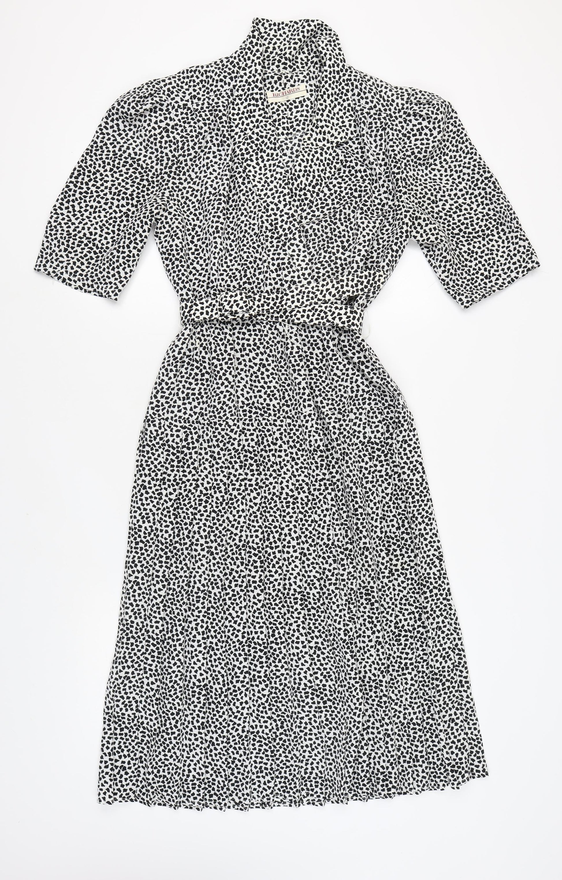 Explore your bold side with this stunning animal print dress from Richards. Sized at UK 12, this dress is tailored to provide a perfect fit for a sophisticated silhouette. Made from 100% polyester, it offers both comfort and durability. The half sleeves and timeless animal print give this dress an edge that is both chic and versatile. Whether you're heading to a casual outing or a stylish evening event, this dress promises to elevate your ensemble with its unique pattern and classic black colour. Pair it with your favourite heels and accessories for a look that's truly your own. Experience unparalleled style with this must-have addition to your wardrobe.
