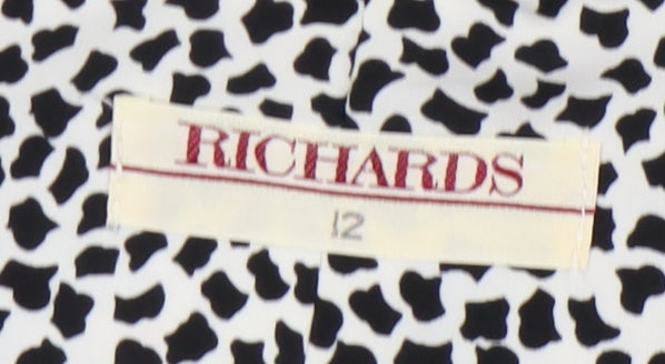 NEXT Womens Black Geometric Polyester A-Line Size 12 Round Neck Button