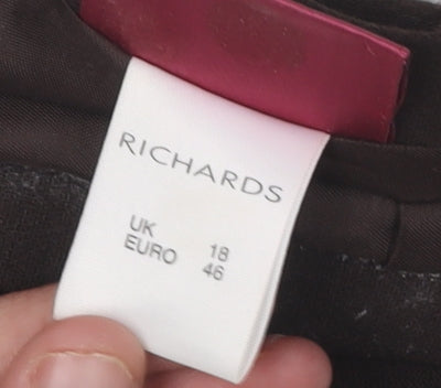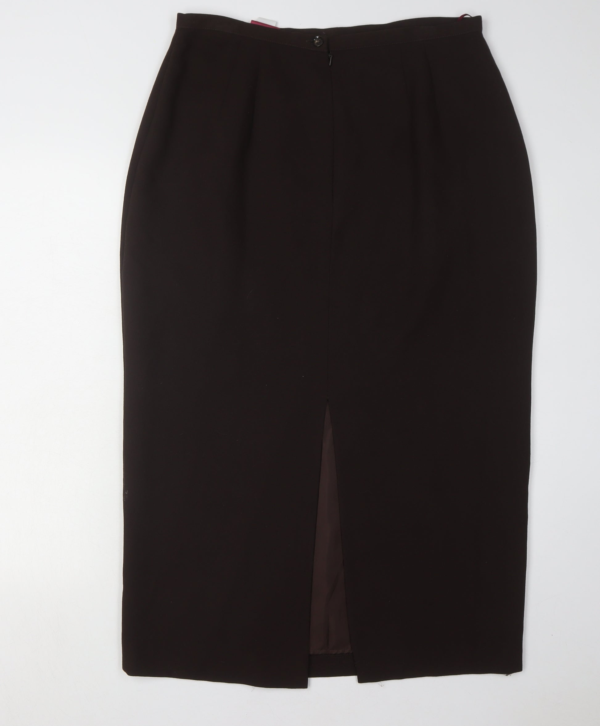 Elevate your professional wardrobe with this classic Richards Women's Black Pencil Skirt, designed for sophisticated business wear. Crafted in a timeless straight and pencil style, this skirt offers a sleek silhouette that complements every figure, making it a versatile addition to your collection. Constructed from a blend of 65% polyester and 35% viscose, the material ensures durability and comfort, while providing a refined, polished look. The pristine black colour adds sophistication, making it suitable for various occasions, from meetings to formal events. This skirt features a discreet slit at the back, combining style with ease of movement, and is fitted with a convenient button and zip closure, ensuring a secure, comfortable fit. The skirt is perfect for the autumn, spring, and winter seasons, enhancing your wardrobe year-round. With a no-pattern design, it maintains an understated elegance that's easy to style with virtually any top or blouse. Ideal for women seeking a sophisticated and professional appearance, it's particularly well-suited for business and workwear occasions. To maintain the quality of this garment, it is recommended to dry clean only, preserving its fabric and fit. Although the skirt is in excellent condition with no visible damage or stains, it has been pre-owned, ensuring you get quality at a value price. Perfect for office wear or any smart casual gathering, this Richards black pencil skirt is a wardrobe essential that promises to remain a favorite for seasons to come. Pair it with a chic blouse and heels for an effortlessly elegant look that transitions seamlessly from day to night.