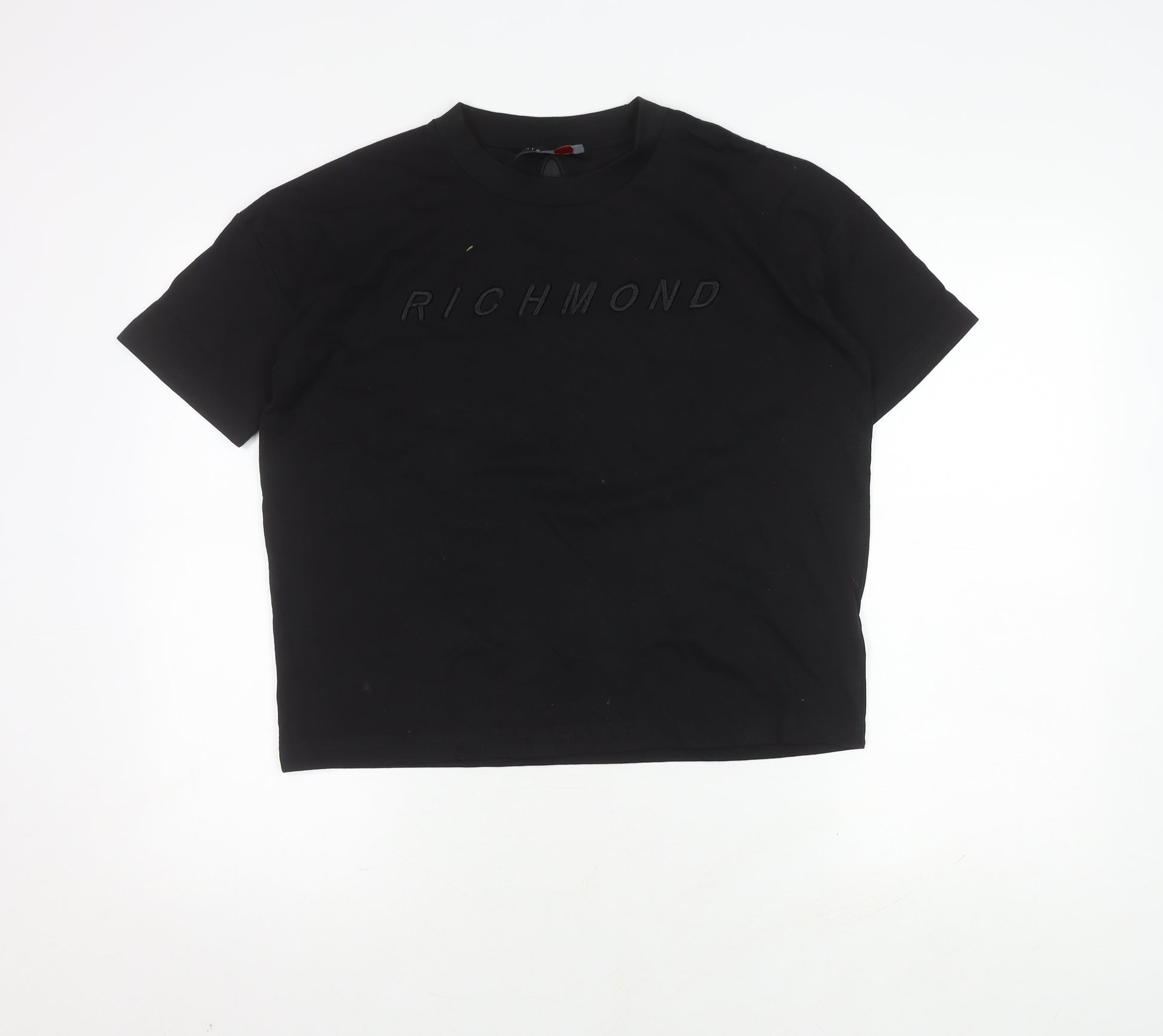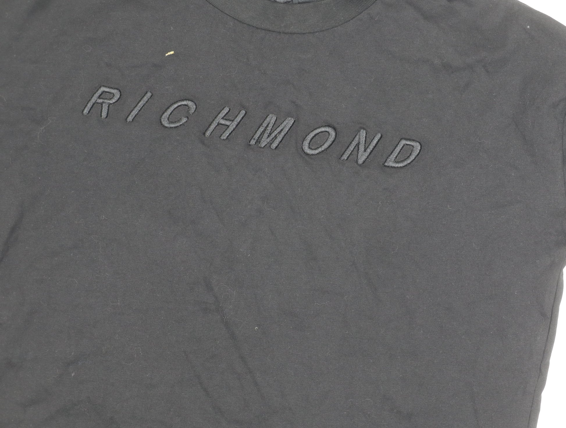 This Richmond Sport T-Shirt in black is the perfect addition to your casual wardrobe. Designed for unisex adults, it features a classic crew neck and short sleeves, offering a comfortable and versatile fit for everyday wear. Made entirely from 100% cotton, this jersey fabric T-shirt provides a soft and breathable feel, making it ideal for all seasons. The embroidered Richmond logo accents add a touch of detail without overwhelming the basic style of the shirt. Whether you're pairing it with jeans for a relaxed look or layering it under a jacket, this T-shirt is suitable for various casual occasions. Its regular fit ensures a timeless silhouette, and the pullover closure allows for easy wear. Enjoy convenience with machine washability, and embrace the garment's durability and enduring style. Discover the effortless charm this T-shirt brings to your everyday style.