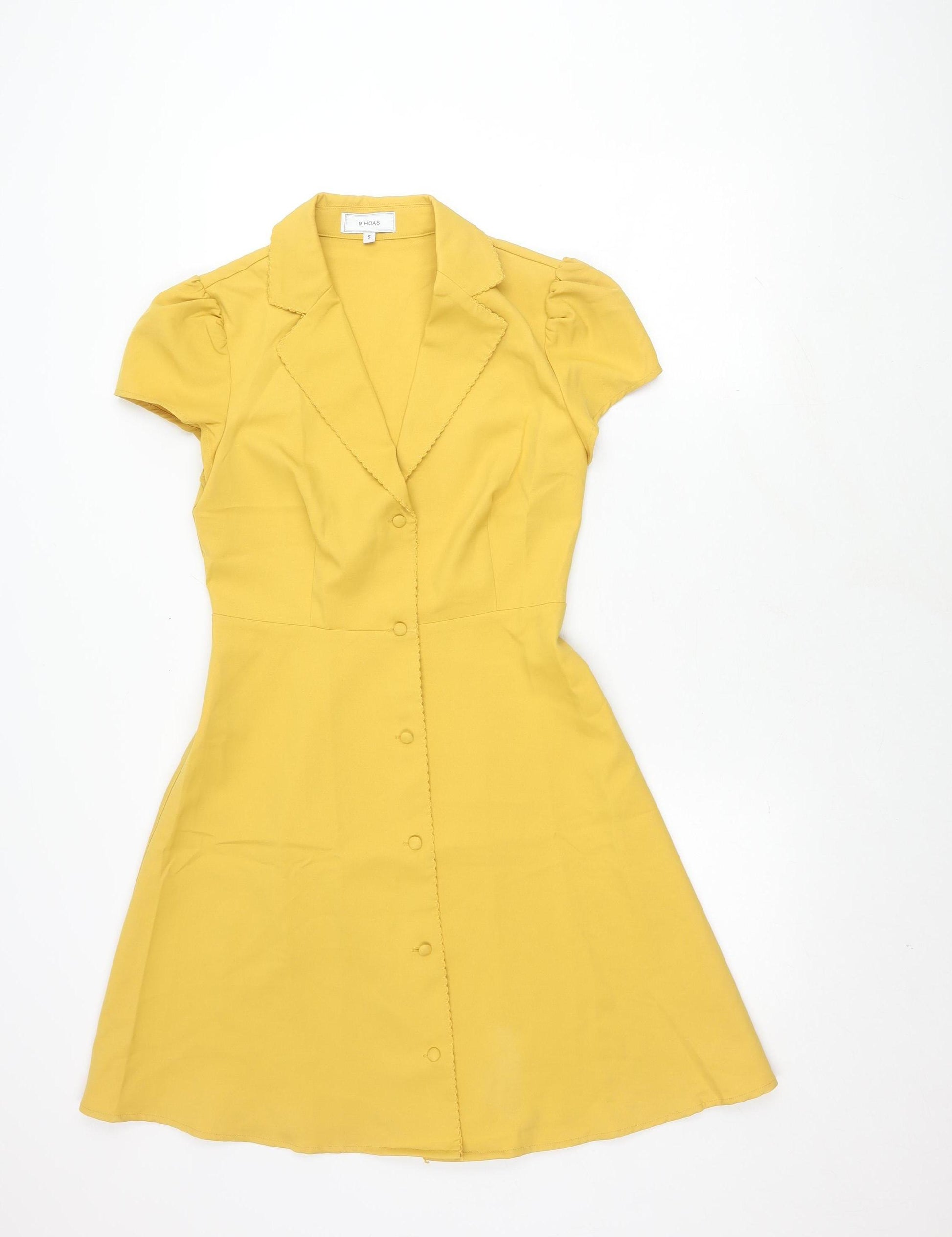 Step into style with this chic yellow dress from RIHOAS. Crafted for the fashion-forward woman, this piece showcases a vibrant yellow hue, perfect for adding a pop of colour to your wardrobe. Made from 100% polyester, the dress ensures a smooth fit while being durable enough for everyday wear. A collared neckline enhances its sophisticated appeal, making it versatile for both casual outings and semi-formal occasions. The button-down front adds a classic touch, while the woven texture ensures breathability and comfort. Ideal for summer and spring seasons, this dress is machine washable, making care easy and convenient. Whether you're headed to a brunch, a casual get-together, or a day out shopping, this dress promises to keep you stylish and comfortable. Embrace the sunny vibes and let your wardrobe reflect your vibrant personality.