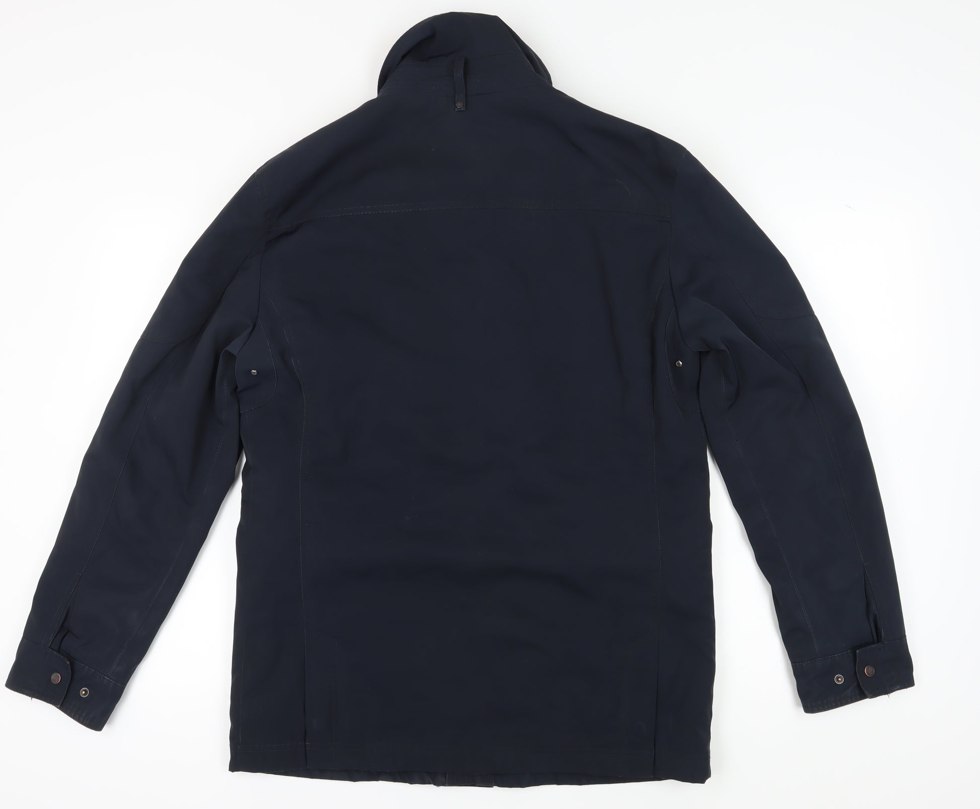 Elevate your outerwear collection with this meticulously crafted Riley men's jacket. Designed in a sophisticated blue hue, this military-style jacket combines functionality with refined aesthetics, perfect for enduring chilly autumn and winter days. Crafted from a durable polyester softshell, it ensures warmth and comfort throughout any adventure. The jacket features a stand-up collar, adding a sophisticated touch to its classic regular fit. Tailored with precision, the mid-length design caters to casual occasions, ensuring you remain stylish yet comfortable. Accentuated with practical button and zip closures, it offers added security and a sleek finish. Functional zipped pockets provide ample space for your essentials, blending convenience with fashion. Despite light marks on the fabric, the jacket maintains its very good condition, promising durability and style. Suitable for machine washing, this piece assures easy maintenance. An ideal addition to the modern wardrobe, this jacket encapsulates the essence of timeless style, making it a must-have for those seeking to combine style with practicality.
