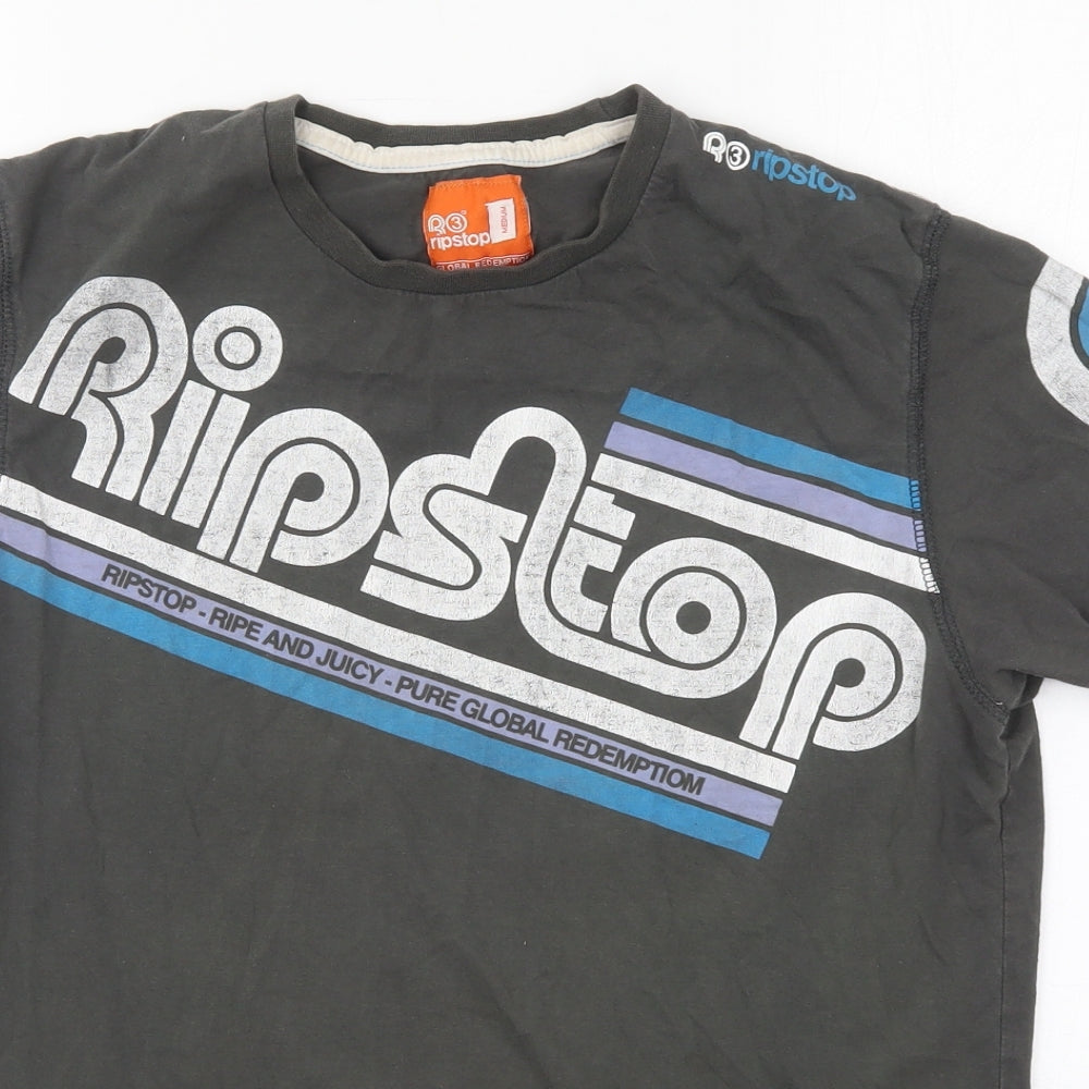 Hugo Boss Men's Grey Logo Graphic Crew Neck Cotton T-Shirt M