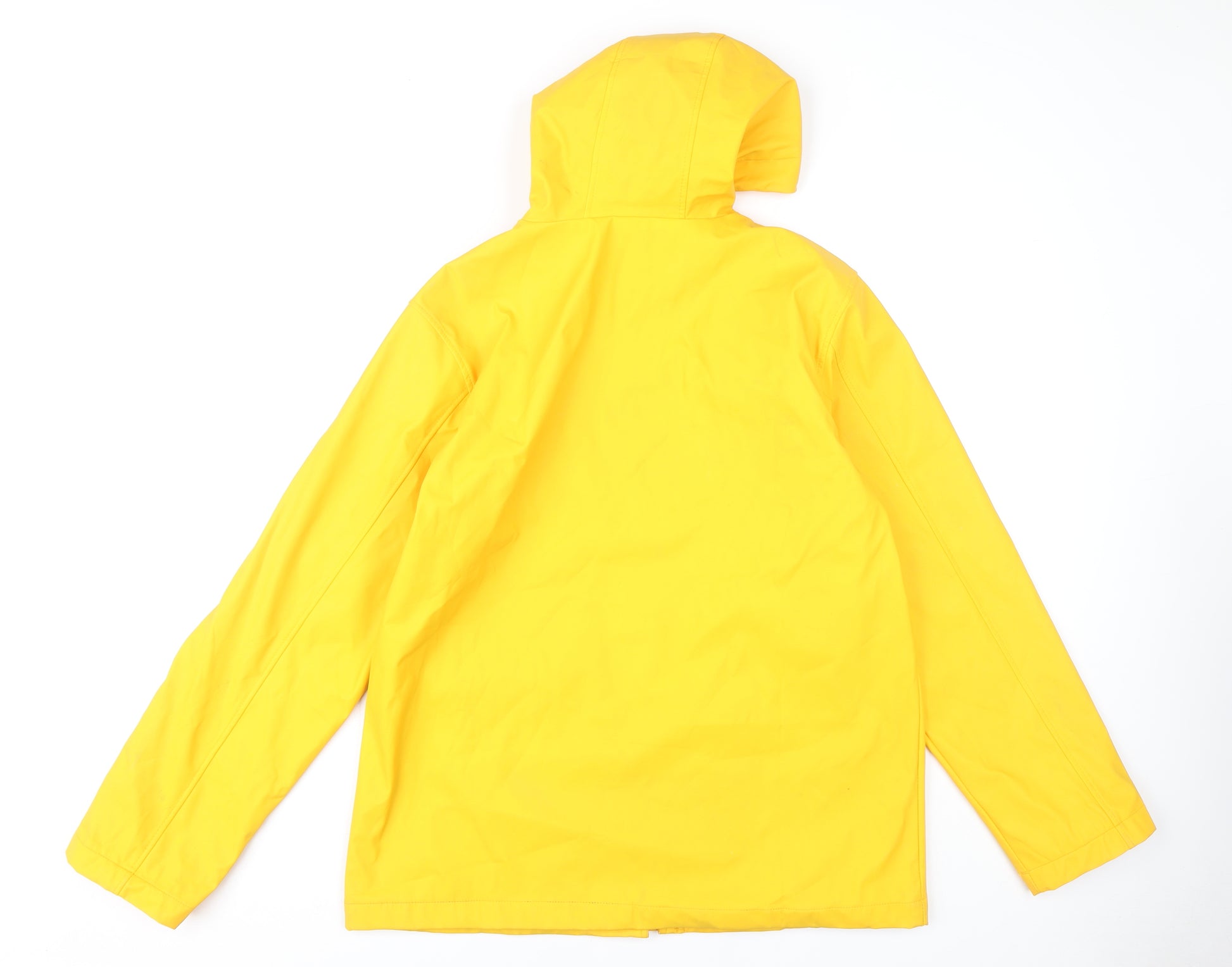 Stay stylish and protected in wet weather with this vibrant yellow rain jacket by Rising. Designed for women, this waterproof rain coat is perfect for both spring and autumn seasons. The jacket features a practical hood to keep you dry during unexpected showers, while the zip and snap closure ensure a secure fit against the elements. Its bright yellow colour not only adds a pop of cheerful style but also enhances visibility during gloomy weather. Made from durable polyurethane, this lightweight jacket offers comfort and reliability, ideal for everyday casual wear. Enjoy long sleeves to keep you snug, with a regular fit tailored for comfort. The jacket is machine washable, making it easy to care for after a day out in the rain. Finished with button accents, this raincoat pairs effortlessly with jeans or casual trousers. Whether you’re navigating city streets or country paths, this practical rain coat is a fabulous addition to any wardrobe. Appearing gently used, it's ready to be part of your next adventure.