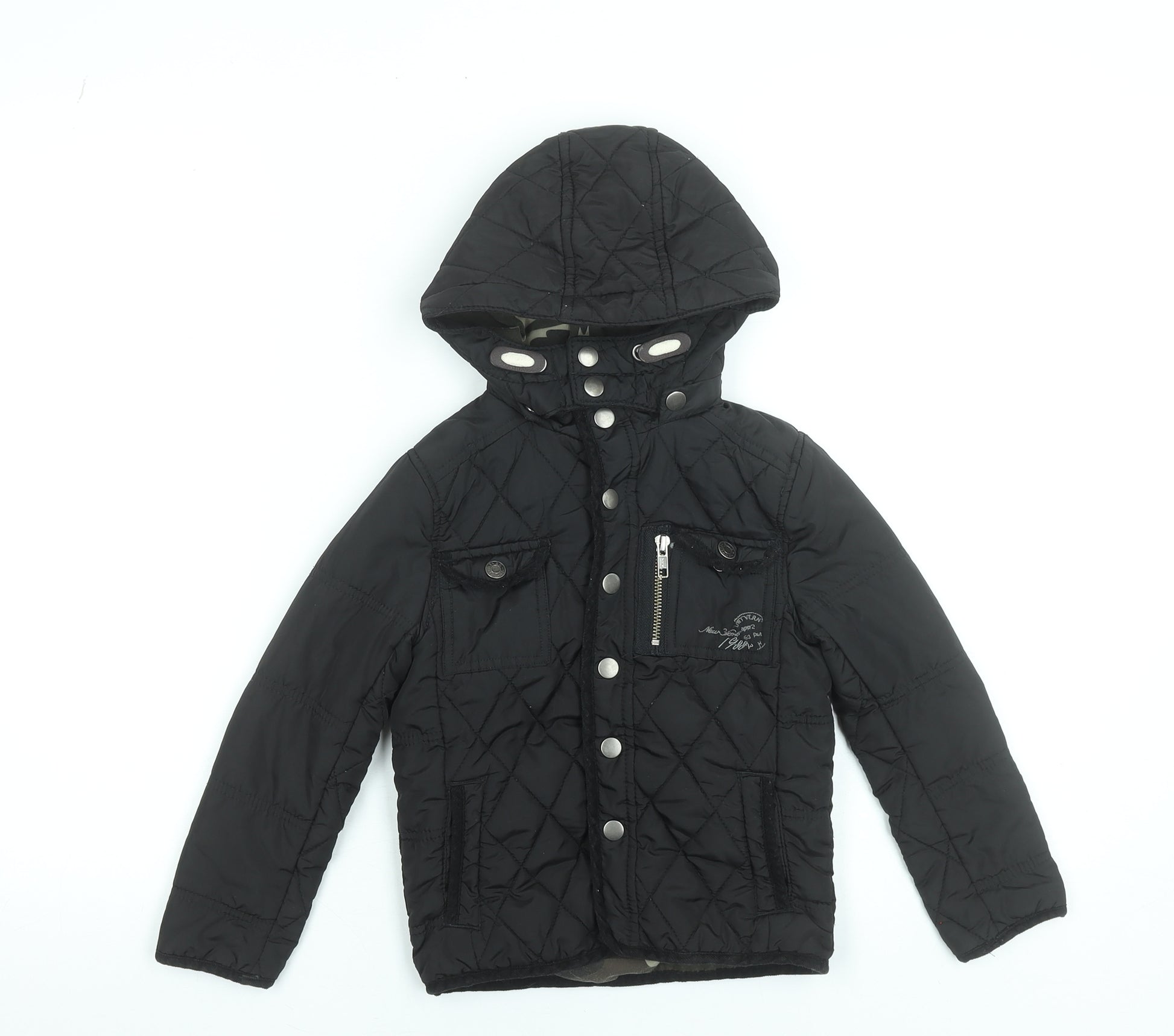 Boys Black Quilted Hooded Jacket 4 Years Polyester Lined