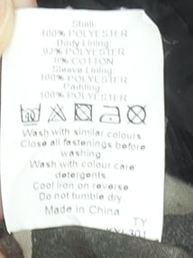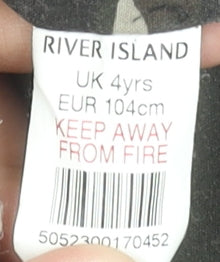 Keep your little one stylish and warm with this River Island boys' black quilted hooded jacket. Designed with a durable 100% polyester outer shell, this jacket provides excellent protection against chillier days while maintaining lightweight comfort. The classic quilted design gives it a trendy and timeless look, ideal for both school and weekend wear. Fully lined with a soft polyester and cotton mix, it ensures extra warmth and cosiness without feeling bulky. Practical features include a full-zip front with an additional button fastening, a secure zip chest pocket, and two side pockets—perfect for keeping hands warm or carrying small essentials. The attached hood offers extra protection from wind and drizzle, making it great for autumn and winter outings. This short-length, regular-fit jacket combines comfort, durability and everyday functionality, whilst subtle logo detailing on the chest adds a stylish finishing touch. Ideal for casual wear, school, or weekend adventures, this River Island jacket balances practicality and fashion effortlessly. In excellent pre-owned condition with no visible flaws, this versatile jacket is ready for more wear. Suitable for boys aged 4 years (UK size 4yrs / EUR 104cm), it's machine washable for easy care. A reliable wardrobe staple for cooler weather, perfect for parents seeking both value and quality.