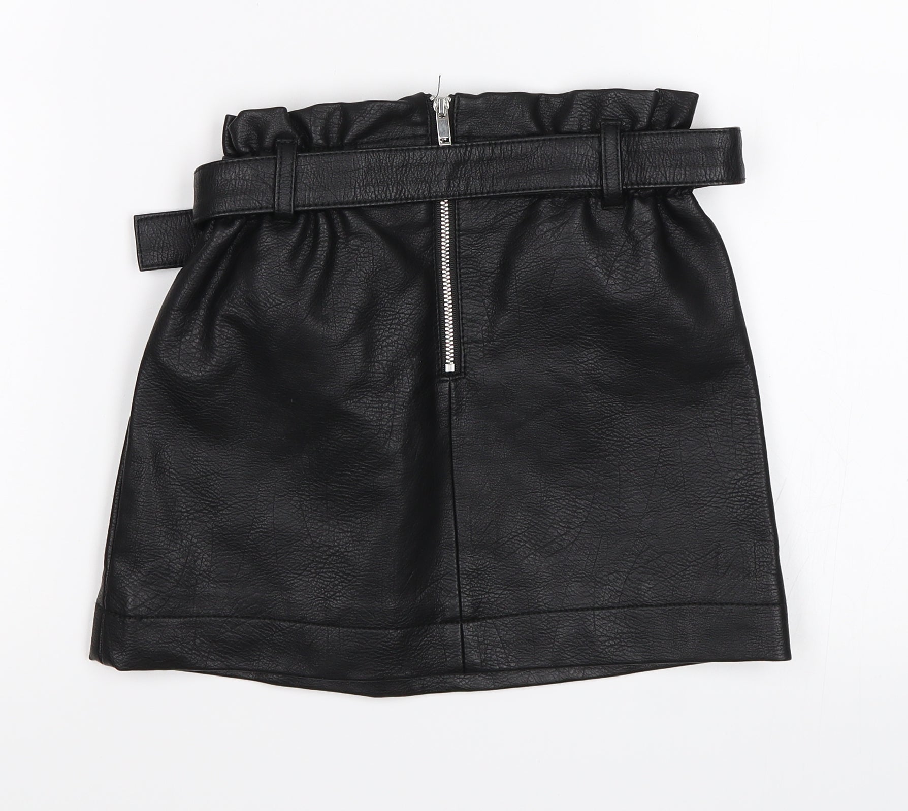 River Island Girls Black Polyester Mini Skirt Size 6 Years Regular Zip