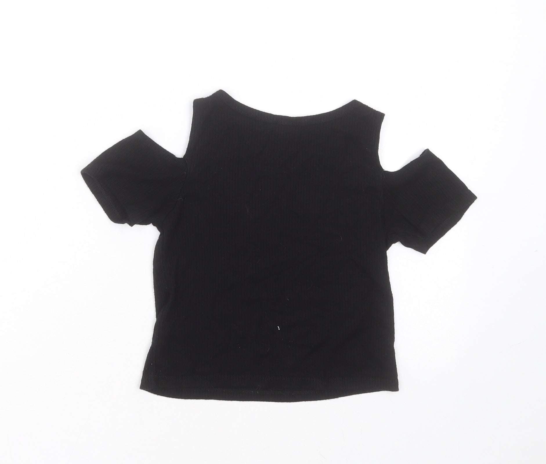 Girls Black Polyester Blend Basic T-Shirt Size 9-10 Years Round Neck - cold shoulder