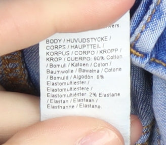 Explore the fashionable yet comfortable world of River Island Girls Blue Skinny Jeans, an ideal choice for young fashionistas. Thoughtfully designed for girls aged 9 years, these jeans bring a perfect blend of style and comfort. Crafted from a quality material blend of 90% cotton, 8% elastomultiester, and 2% elastane, these denim jeans are incredibly soft, stretchy, and durable. The light fabric wash creates a chic, casual look, delivering a timeless appeal that complements any outfit. Ripped accents add a touch of edgy style, while the nifty button closure ensures a secure fit. Perfect for casual outings and everyday wear, these jeans embrace a mid-rise, slim fit design to keep your child comfortable and trendy throughout the day. Easy to care for, these jeans can be conveniently machine-washed, saving time and effort. With an excellent condition rating, free of any tags but maintaining quality akin to brand new jeans, they stand out as a reliable staple in your child's wardrobe. Seize the opportunity to add these versatile jeans to their collection for a reasonable price, and offer them the joy of effortlessly stylish dressing.
