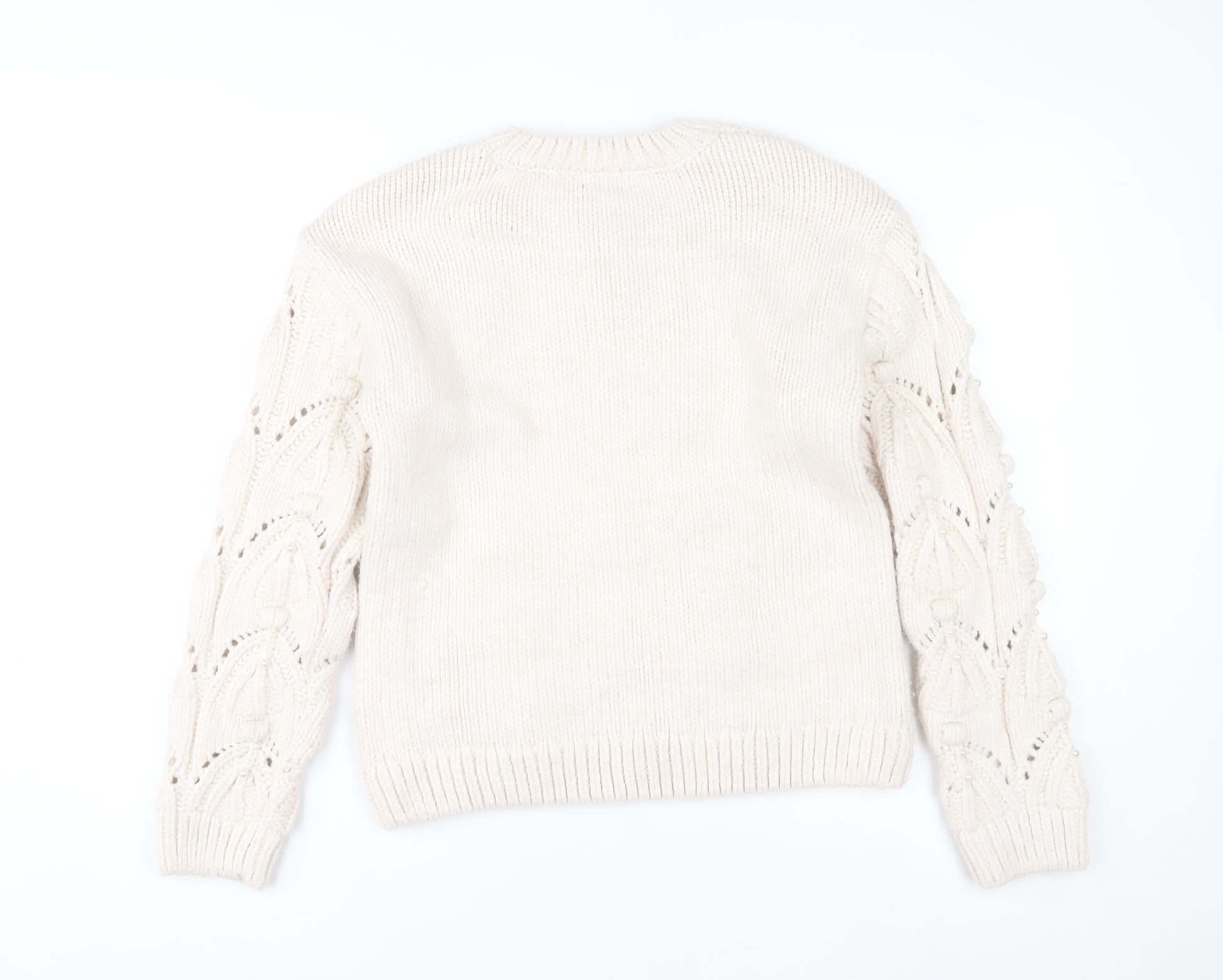 Girls Ivory Knit Jumper 11-12 Years Acrylic Blend Winter Pullover