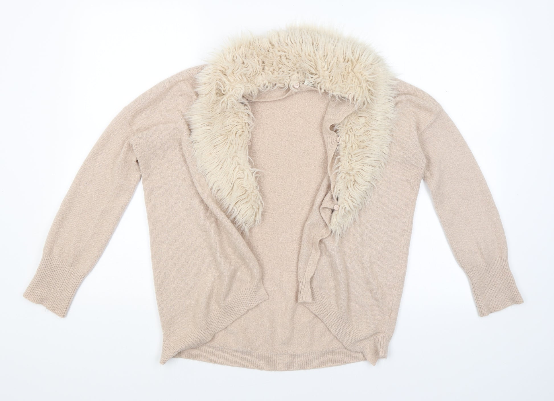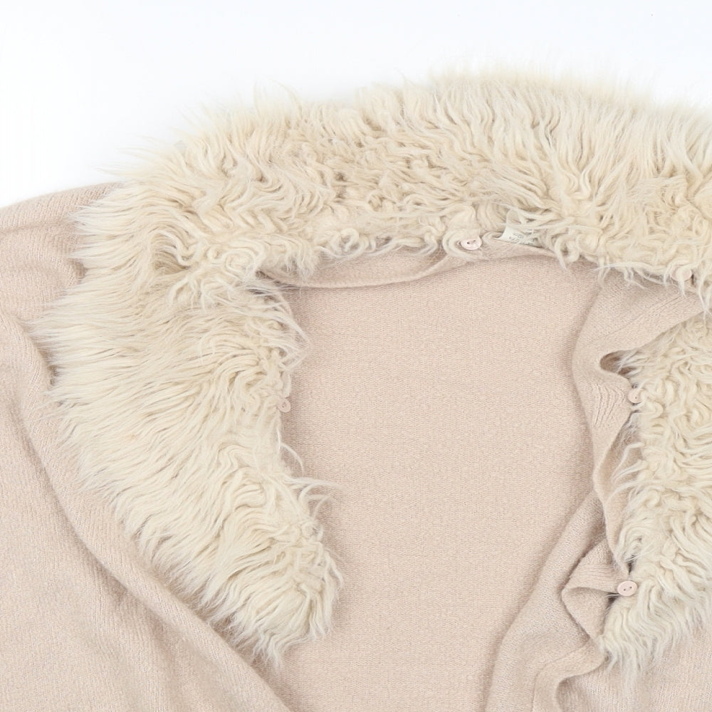Girls Pink Knit Cardigan Jumper Size 11-12 Years - Detachable fur collar`