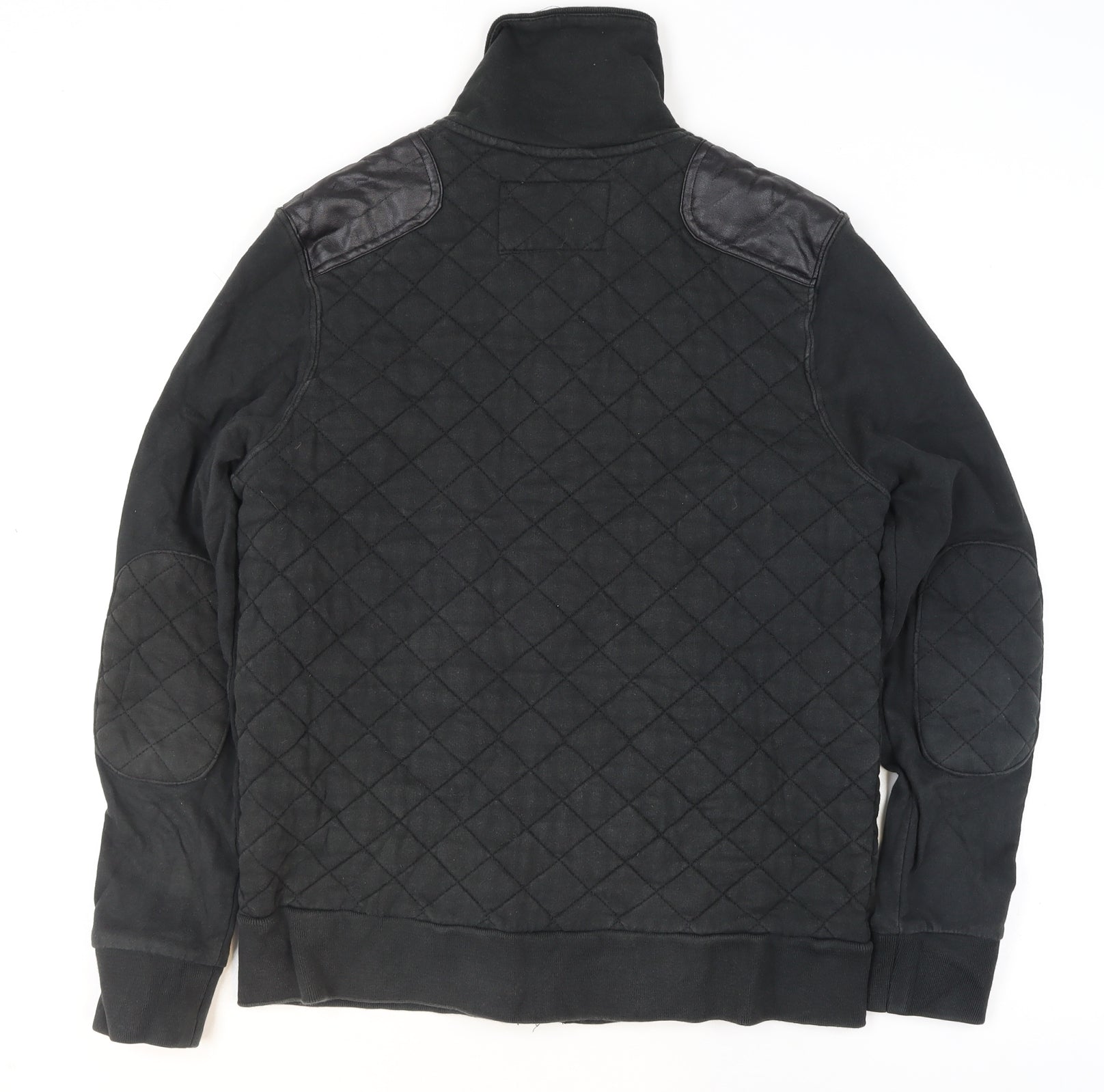 Add timeless style and comfort to your wardrobe with this River Island Men’s Quilted Cotton Jacket in sleek black. Featuring a high-quality 100% cotton outer, this medium-weight jacket offers both warmth and breathability, making it ideal for colder autumn and winter days. The quilted design adds a refined texture and contemporary look, while subtle detailing such as reinforced leather-look shoulder patches brings an elevated touch typical of River Island craftsmanship. Designed in a classic mid-length fit, it combines casual practicality with refined fashion appeal. This men’s jacket features both button and zip closures for a secure, layered fastening, complemented by a high stand-up collar that provides extra neck protection against the chill. Handy front pockets add functional style, perfect for storing essentials or keeping your hands warm. The polyester lining enhances comfort and ensures the jacket retains its structure while feeling soft against the skin. The versatile black colour allows seamless coordination with both casual and smart-casual outfits, pairing perfectly with jeans, chinos, or even layered over knitwear. Suited for casual wear, travel, and seasonal transitions, it’s a reliable option for everyday dressing where warmth and style meet. In very good condition with only minimal signs of previous wear, this piece remains a fashionable, durable addition to any man’s outerwear collection. Finished with River Island’s distinctive label and classic design detailing, it’s a must-have for those seeking understated sophistication and everyday luxury at an affordable price. Designed for regular fit, it ensures comfort without compromising on shape or versatility. Perfect for autumn or winter days out, this jacket offers the ideal balance of functionality and enduring style.