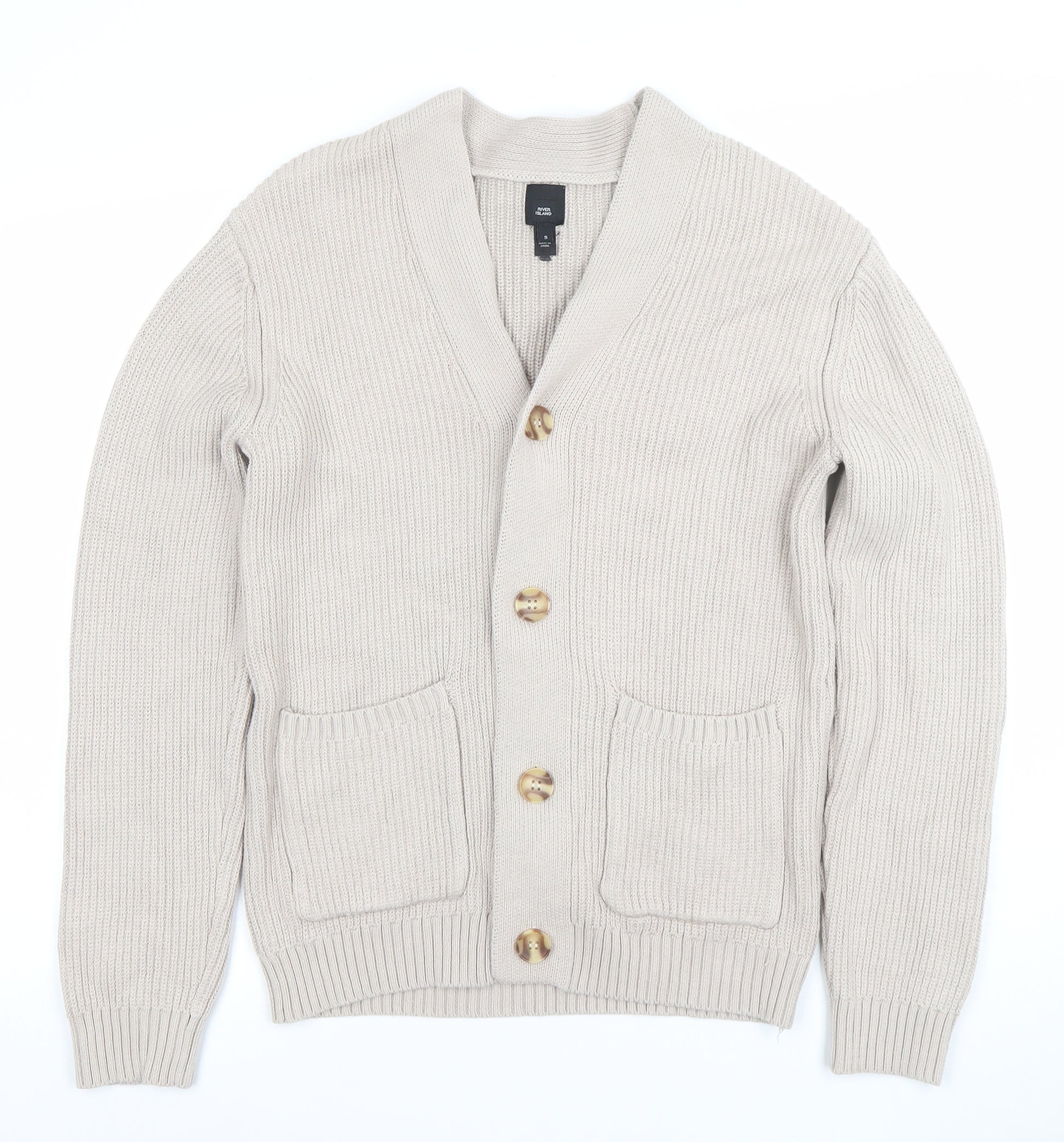 River Island Men’s Beige Cotton Cardigan S Classic Knitwear