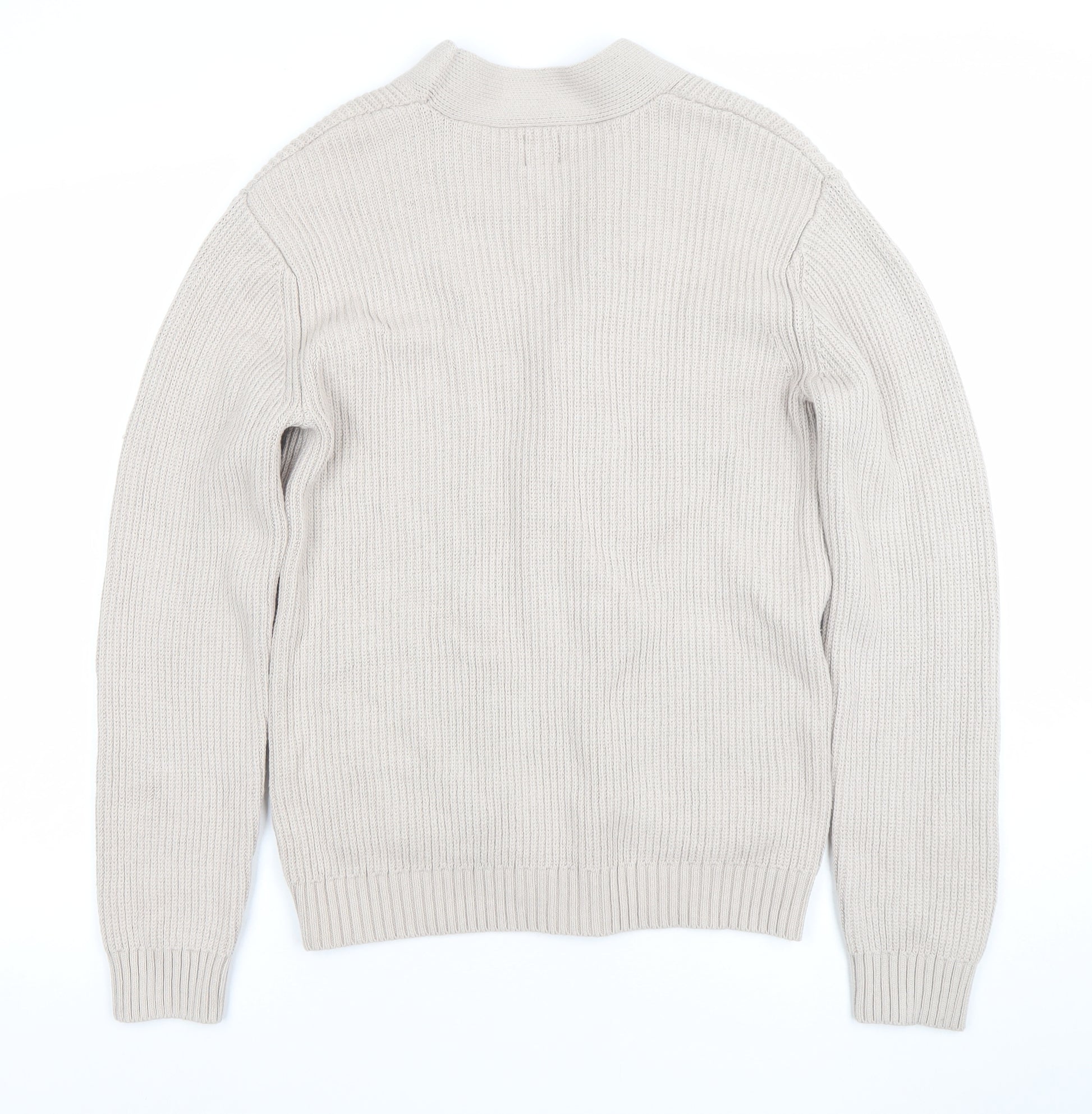 Men's Beige Cotton Knit Cardigan Jumper Size S
