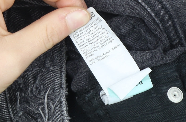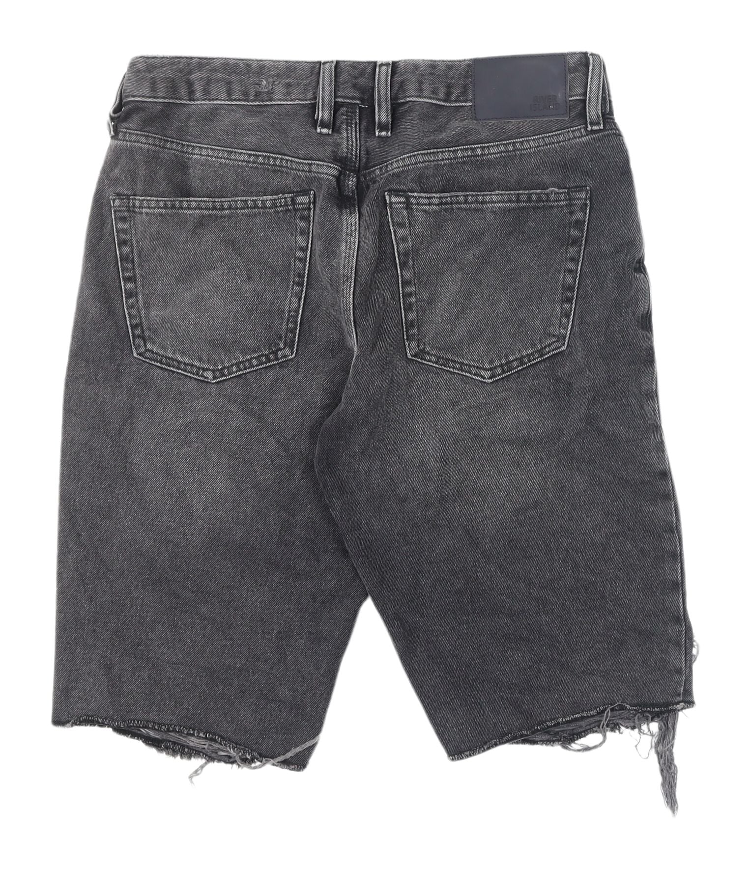 Enhance your casual style with these trendy River Island cargo shorts, perfect for the modern man's wardrobe. Crafted in high-quality black denim, these shorts exhibit a fashionable distressed design, offering a bold grunge theme for everyday wear. Ideal for casual occasions, the shorts feature a regular fit with a comfortable cotton fabric for breathability and versatility during the warmer summer months. The functional 5-pocket design adds convenience and practicality, while the flat front and mid-rise provide a flattering silhouette. Great for pairing with your favourite t-shirt or casual top. Despite the intentional distressing, these shorts are in excellent condition with minimal signs of previous use, making them a stylish and valuable addition to your summer fashion collection.