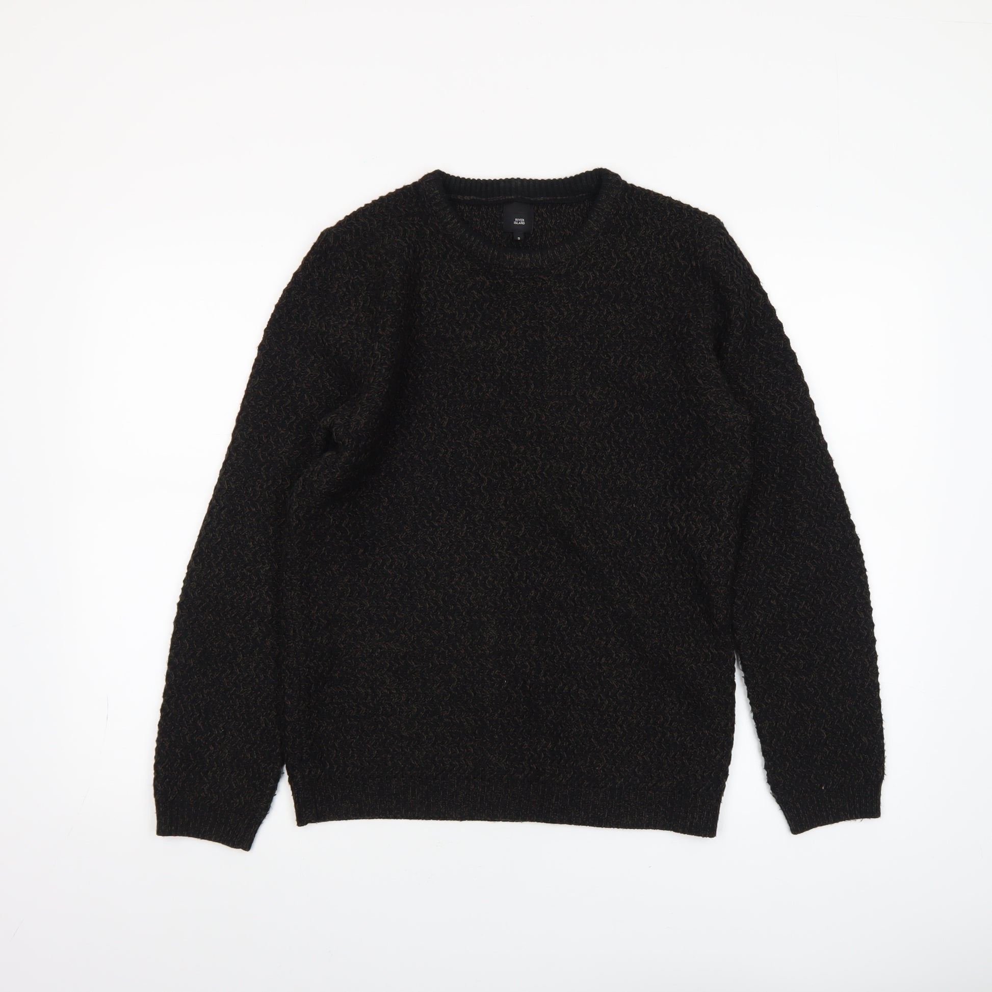 Add classic style and comfort to your wardrobe with this River Island Men's Black Chunky Knit Jumper in size Small. Made from 100% acrylic, this soft and warm pullover offers an easy, regular fit perfect for casual wear during cooler seasons. The thick knit texture provides both warmth and a stylish tactile finish, ideal for autumn and winter layering. Designed with a crew neck and long sleeves, this jumper delivers timeless versatility that can be effortlessly paired with jeans, chinos, or trousers. The deep black shade ensures it complements any outfit, while the lightweight feel and acrylic composition make it breathable and easy to care for. Crafted by River Island, this jumper combines modern quality with a touch of relaxed sophistication. The simple design with no pattern or embellishments makes it ideal for everyday wear, weekend outings or laid-back evenings, while the ribbed cuffs and hem add subtle structure and shape retention. Machine washable for convenience, this durable knit will remain a wardrobe staple through repeated wears. Whether you're heading out for a walk, meeting friends, or lounging at home, this River Island jumper provides reliable warmth and effortless style. Its soft texture and comfortable fit make it a practical choice for men who value both fashion and functionality. Enhance your casual collection with a lightweight, easy-to-style knit that promises lasting comfort and understated style all season long. A great staple piece that embodies the River Island blend of simplicity, comfort, and modern design.