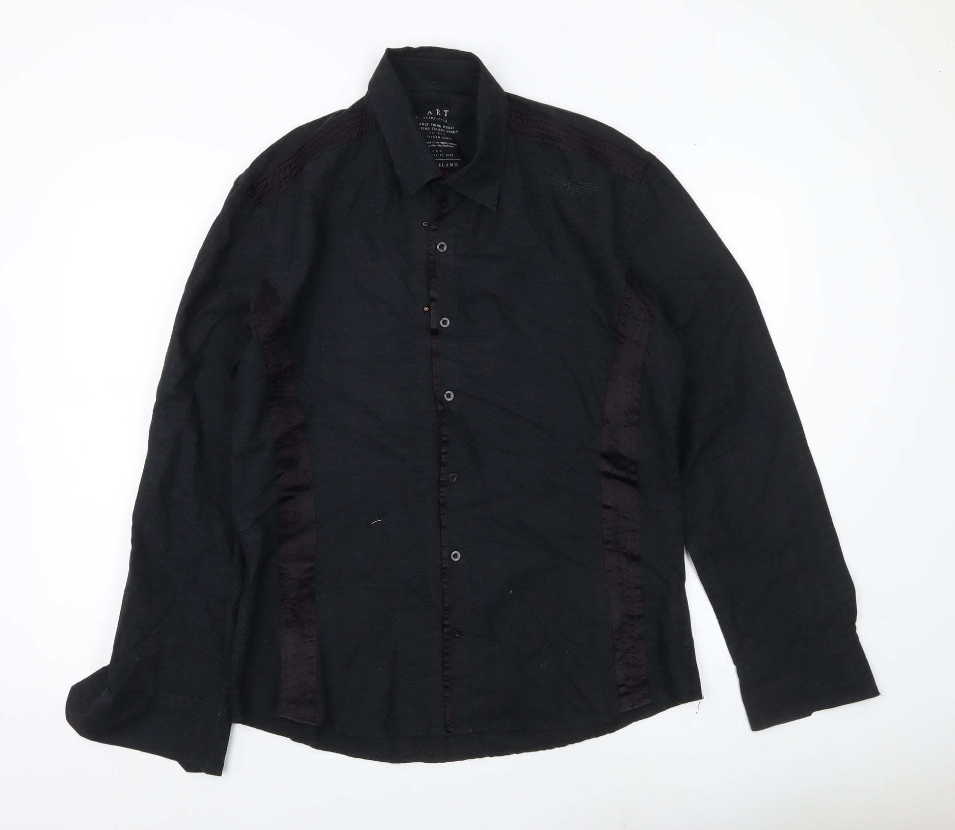Guide London Men's Black Long Sleeve Formal Dress Shirt Size L