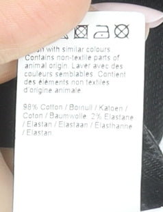Step into effortless style with these classic River Island men's black jeans. Made from a durable blend of 98% cotton and 2% elastane, these jeans provide both comfort and flexibility while maintaining a structured silhouette. The timeless straight-leg cut ensures a flattering fit, making them versatile for any casual or semi-smart occasion. Designed with a standard mid-rise waist, these jeans feature the iconic five-pocket design, providing practical storage and everyday functionality. The material’s dark denim finish gives a refined yet relaxed appearance, ideal for pairing with anything from crisp shirts to casual jumpers. The zip and button closure add a traditional denim touch while ensuring a secure fit. These jeans are machine washable and easy to care for, retaining their rich black tone wash after wash. Subtle stretch in the fabric enhances comfort, allowing freedom of movement throughout the day. Although pre-owned, they remain in good wearable condition with minor fraying at the hems that adds a touch of character without compromising overall quality. Perfect for the autumn and winter months, these jeans offer warmth and durability, suited for a variety of looks — dress them up with boots or keep things relaxed with trainers. River Island’s reputation for reliable fit and contemporary styling shines through, making these a wardrobe staple for modern men. Great for daily wear, nights out, or informal gatherings, these jeans combine practical design with urban sophistication. Whether you’re refreshing your denim collection or searching for a dependable versatile pair, these jeans promise value and timeless appeal with a comfortable fit in a sleek, dark black wash. A true essential for anyone who appreciates quality denim and effortless style.