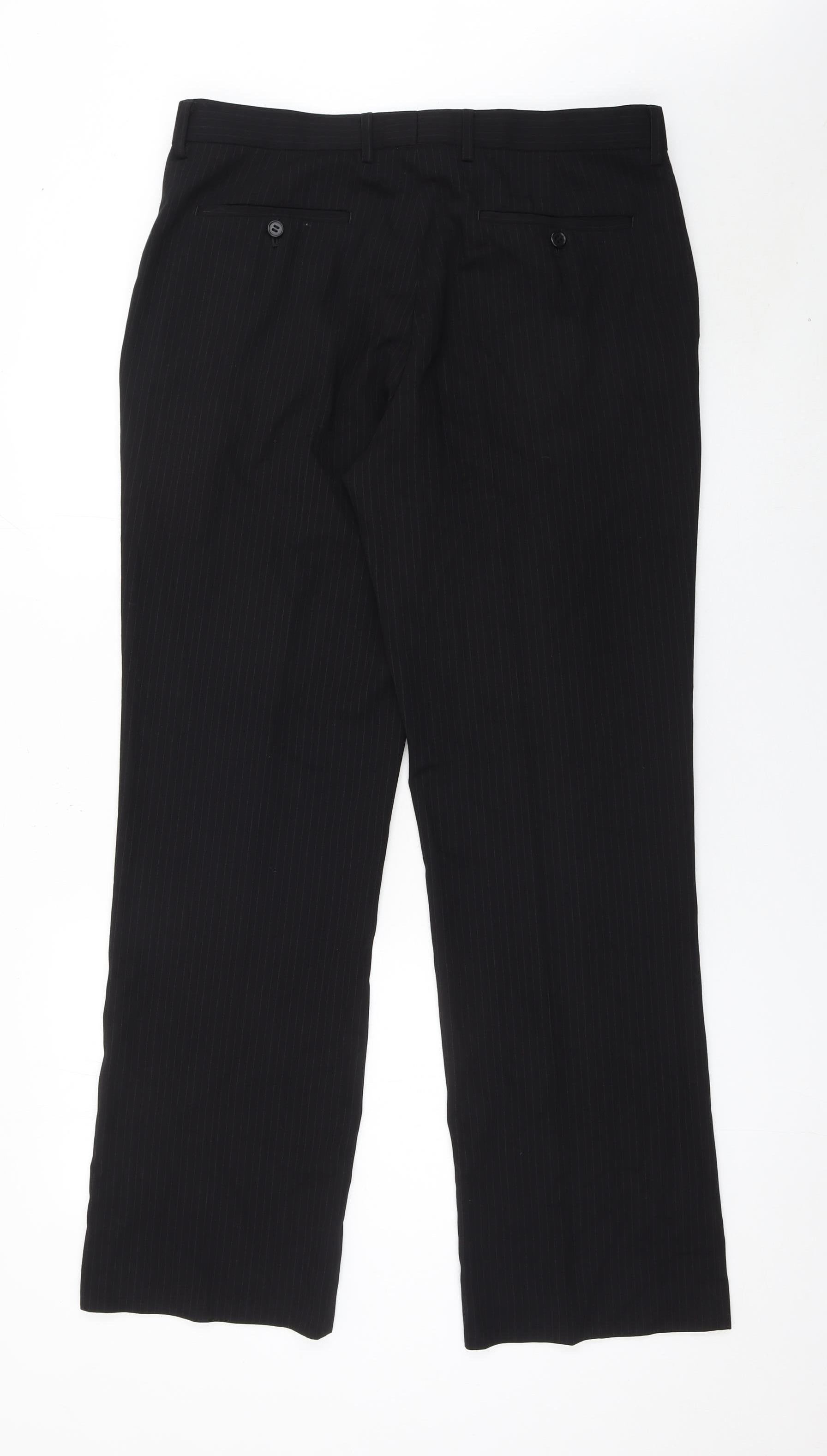 Men's Black Pinstripe Dress Trousers 34L Smart Workwear