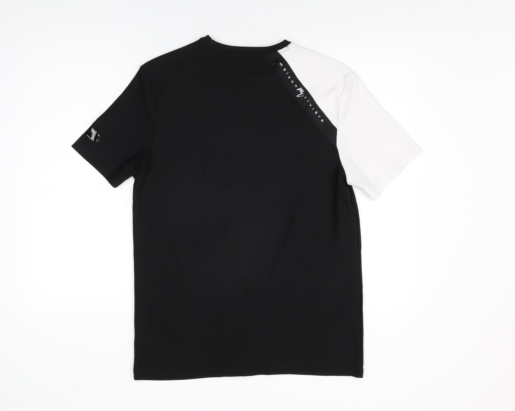 Mens Black Polyester T-Shirt Size M Round Neck