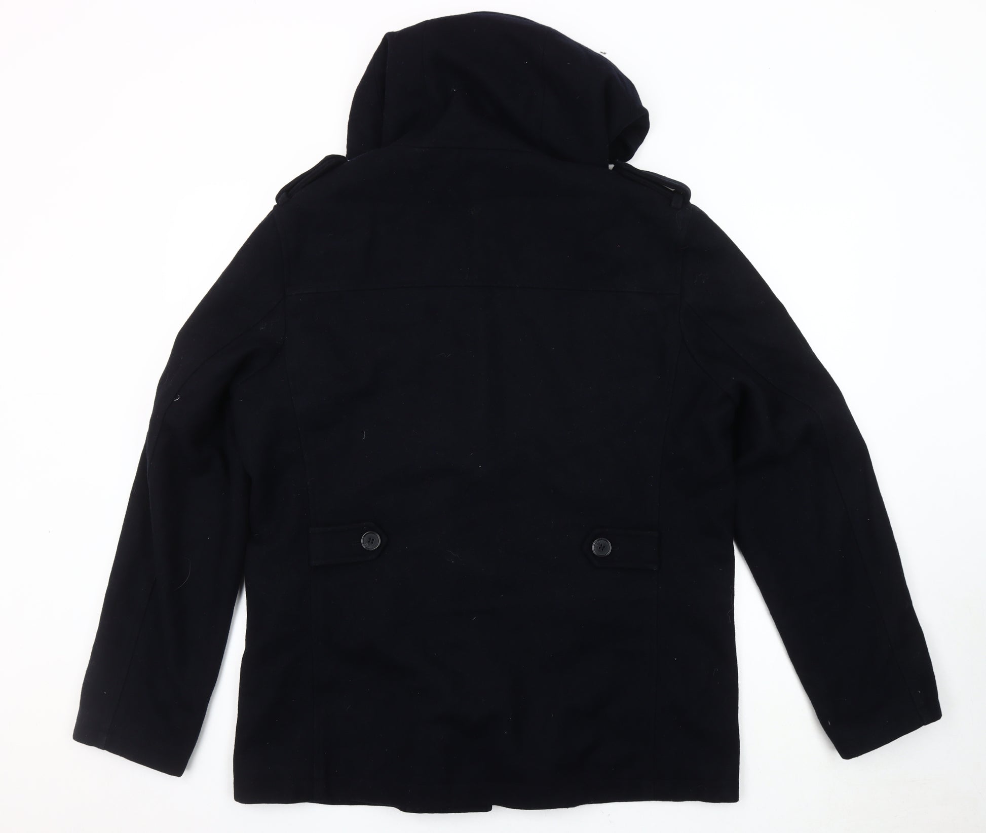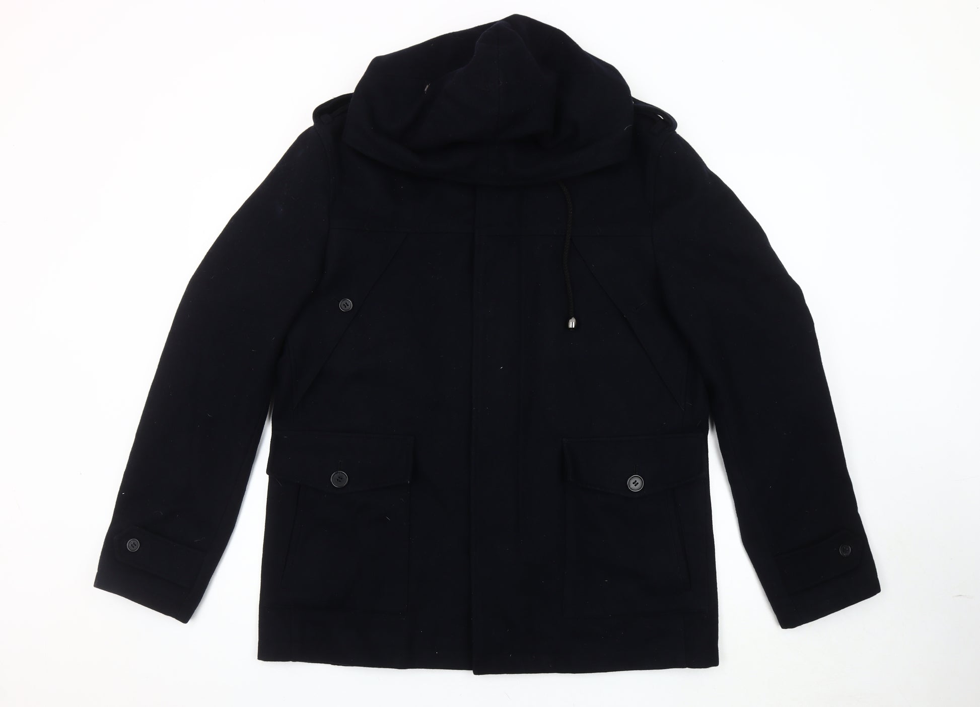 Discover style and comfort with this River Island Men's Black Wool Parka Jacket, perfect for adding a touch of sophistication to your everyday look. Crafted for those who appreciate chic and practical outerwear, this jacket seamlessly combines fashion with function.Designed with a sleek black exterior, this wool parka offers a timeless aesthetic that suits any wardrobe. The mid-length cut provides extra warmth, making it an ideal choice for cooler days. Its fully hooded feature ensures you stay protected from unexpected weather, while the convenient pockets add practicality for your on-the-go essentials.With button accents that add a touch of classic style, this jacket embodies River Island's commitment to quality and style. The interior is lined for additional comfort, making it a cosy option for casual wear. Whether you're heading out for a weekend stroll or need a reliable layer for your commute, this jacket has you covered.Ideal for men seeking versatile outerwear, this jacket effortlessly complements both casual and semi-formal outfits, making it a versatile addition to your wardrobe. Upgrade your collection with this excellent condition piece from River Island, and experience the blend of timeless design and modern functionality.