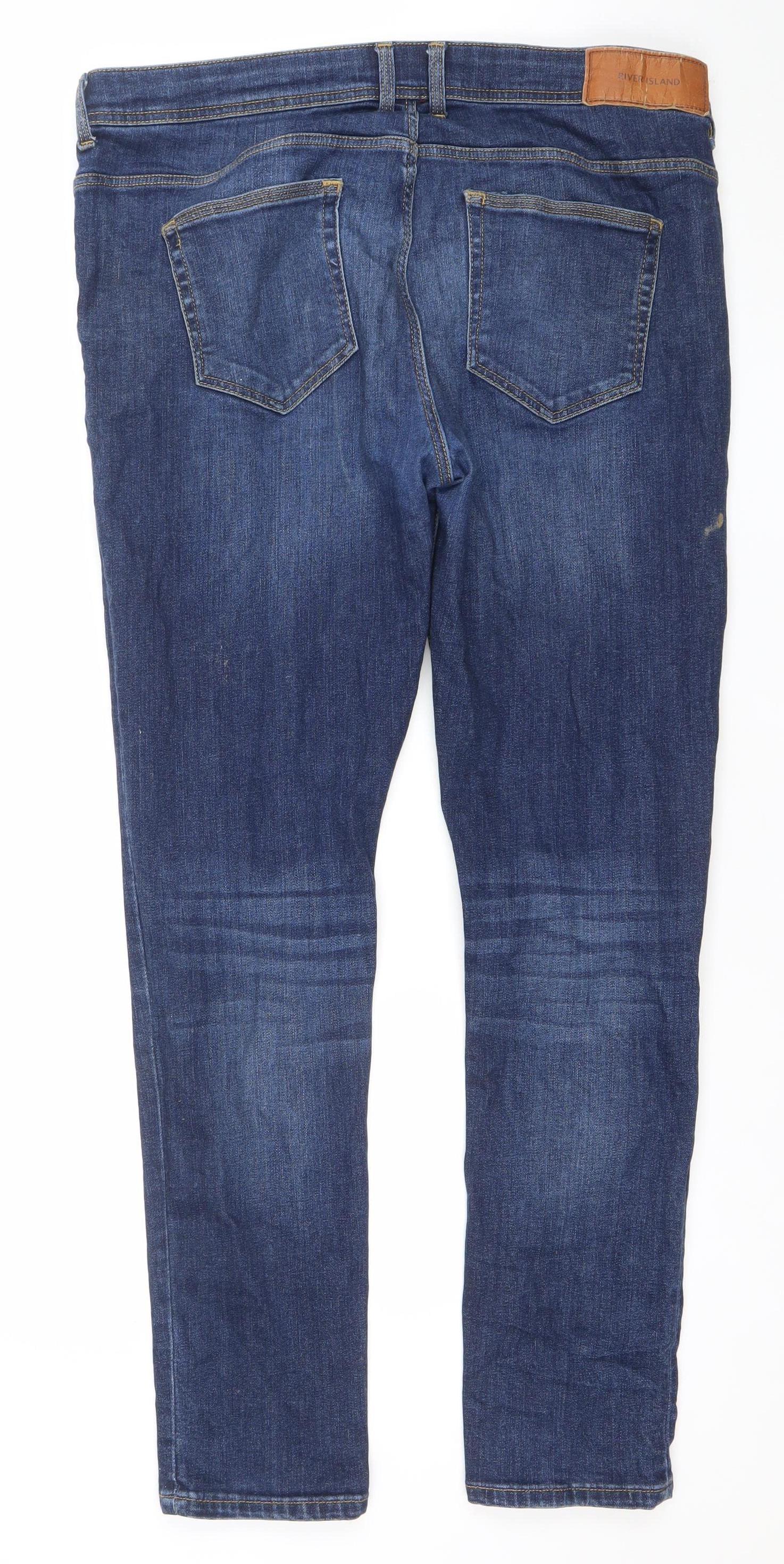 Step out in classic everyday style with these River Island men's straight leg jeans, crafted from high-quality denim for a timeless and versatile look. Designed with a flattering regular fit, these jeans feature a comfortable 36-inch waist and 32-inch inside leg, perfect for creating a confident, casual silhouette. The rich medium blue wash with subtle fade gives a modern touch that pairs effortlessly with shirts, jumpers, or casual tees. Made from a durable and breathable cotton blend with just the right amount of elastane, they offer a soft feel and a hint of stretch for ease of movement, ensuring both comfort and longevity. Typical of River Island craftsmanship, these jeans include practical features such as a secure button and zip fastening, classic 5-pocket design, and sturdy belt loops, providing both form and function. Perfect for all seasons, these versatile jeans suit a wide range of occasions—from city weekends to relaxed evenings out. In very good pre-owned condition, they show minimal signs of wear with light surface fading on the upper thigh, adding subtle character to the denim. With their stylish straight cut, premium fabric, and classic blue tone, these jeans make an excellent addition to any wardrobe. Ideal for the modern man seeking a smart yet relaxed look that never goes out of style, they represent both comfort and quality at great value. Add them to your collection for a confident blend of everyday practicality and effortless style.