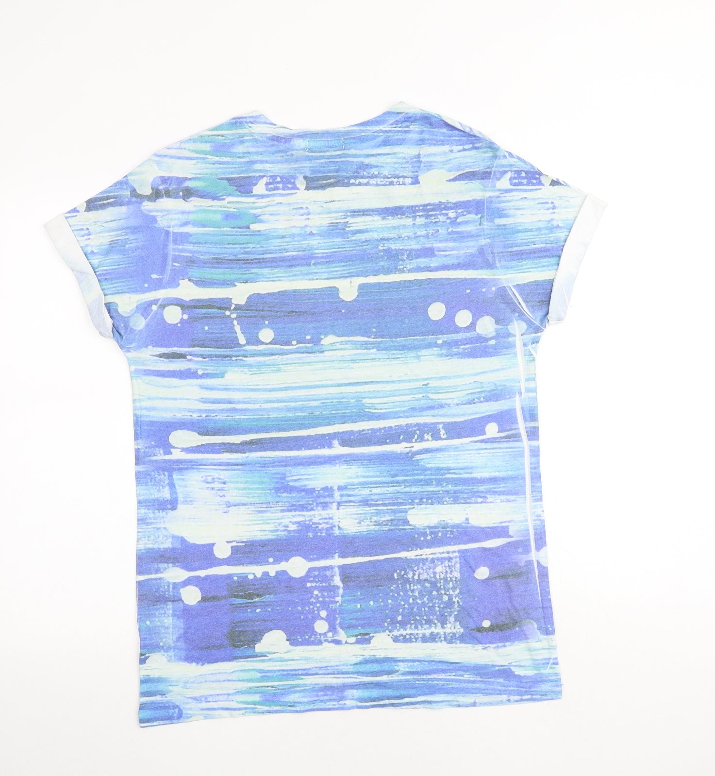 Mens Blue Geometric Polyester T-Shirt Size M Round Neck