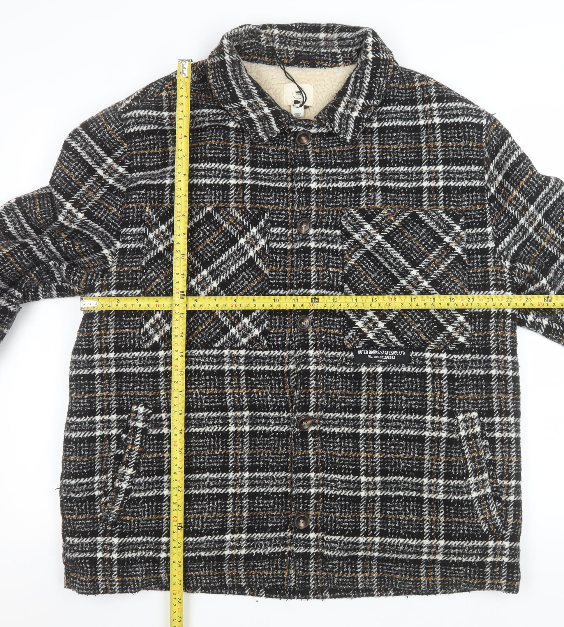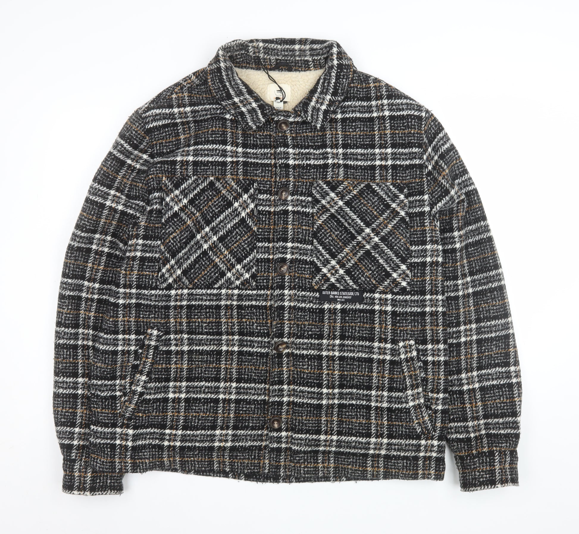 Elevate your seasonal wardrobe with this stylish River Island men's check tweed jacket. Designed for both practicality and classic appeal, this jacket is crafted from a premium blend of 77% polyester, 17% acrylic, 4% wool, 1% cotton, and 1% polyamide, combining durability and comfort with timeless design. The warm polyester lining ensures comfort during the cooler autumn and winter months, while the checked tweed fabric presents a sophisticated yet casual aesthetic suitable for smart-casual and everyday wear.The jacket features a button closure and collared neckline, giving it a structured finish that maintains its classic menswear charm. The two large chest pockets and side pockets offer both style and functionality, perfect for keeping hands warm or carrying small essentials. The brown and white check colourway provides effortless versatility, pairing easily with denim, chinos, or layered over knitwear for a refined look.Lined for extra warmth and fitted for a regular silhouette, this mid-length jacket sits comfortably on the frame without feeling too bulky. Its all-season design makes it an ideal wardrobe staple for transitioning between crisp autumn days and winter chills. The soft yet robust fabric composition makes it easy to maintain — simply machine washable to keep it looking great for longer.A stylish nod to classic British outerwear, this River Island piece merges premium craftsmanship with accessible fashion. Whether you’re heading out for a casual day, meeting friends, or layering up for a stroll, this versatile jacket offers both warmth and character. Condition-rated as Excellent, it shows minimal signs of previous wear with no visible defects, presenting as well-maintained and ready to wear. Perfect for any man looking to add effortless polish and comfort to their outerwear collection. Invest in a look that blends modern confidence with timeless style through this River Island check tweed lined jacket.