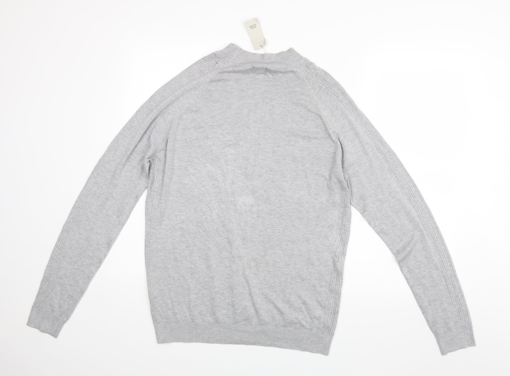H&M Mens Grey Cotton Knit Jumper L Long Sleeve Crew Neck Pullover