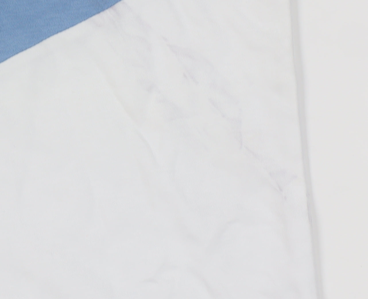 Add a touch of style to your wardrobe with this River Island men's T-shirt. Featuring a modern colourblock design, this short sleeve T-shirt combines navy, light blue, and white for a fresh and trendy look. Crafted from high-quality cotton, polyester, and elastane, it promises comfort and durability, ideal for any casual outing. The T-shirt sports a classic crew neck and jersey fabric, offering both elegance and ease. Despite slight discolouration, its charm remains intact, making it a versatile addition to any fashion-forward collection. Easy to maintain with machine washable care, this piece is perfect for any season. Update your casual ensemble with this stylish River Island tee and revel in its contemporary appeal at an affordable price.