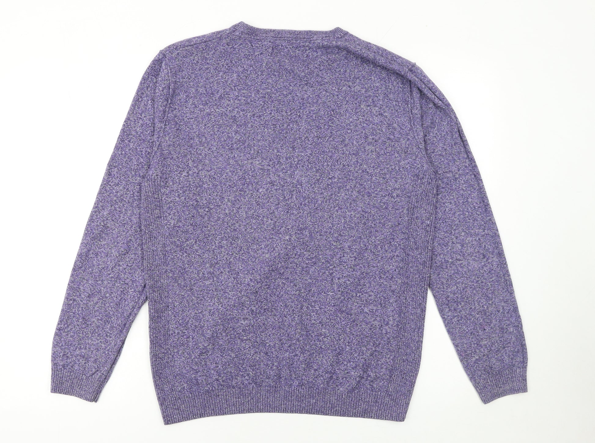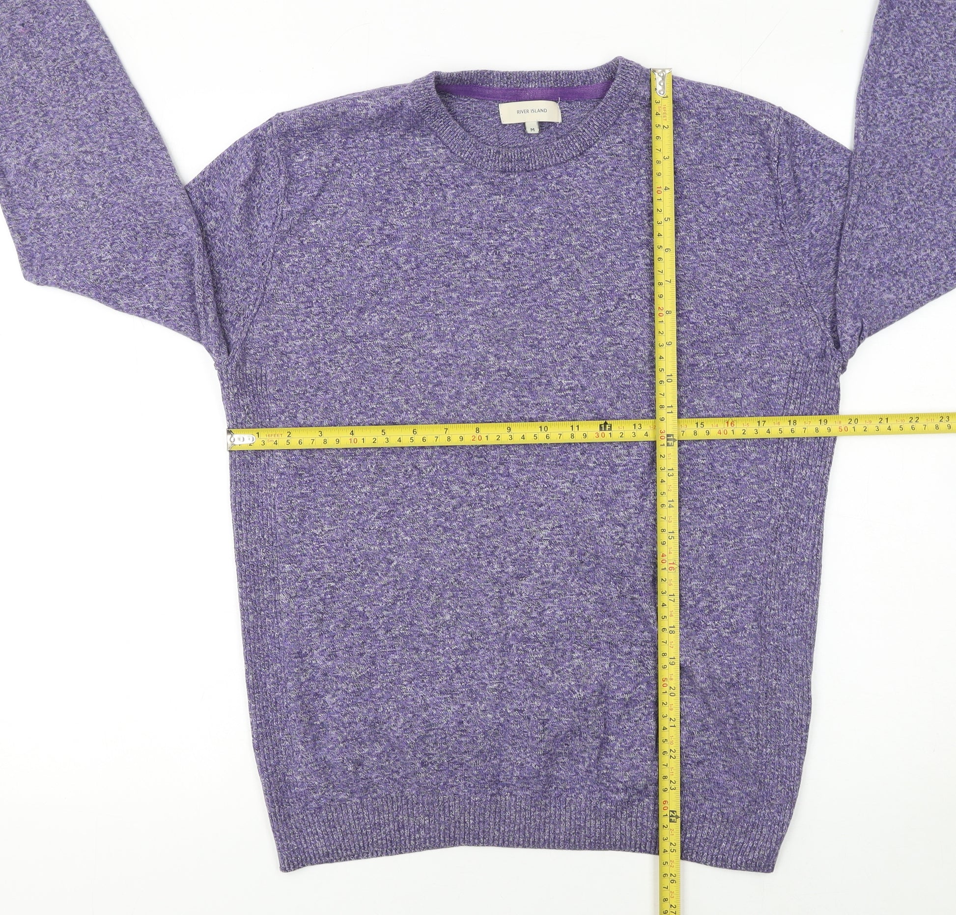 Add timeless style and comfort to your wardrobe with this River Island Men's Purple Cotton Crew Neck Jumper in size M. Crafted from 100% pure cotton, this lightweight knit is soft to the touch and designed for everyday wear. The classic crew neckline and ribbed hem and cuffs ensure a flattering and secure fit, offering both comfort and practicality. The fine-textured weave gives it a neat, tight-knit finish that looks great layered over shirts or worn on its own. Perfect for casual days or smart-casual settings, its versatile purple marl shade pairs easily with jeans, chinos, or trousers, bringing effortless refinement to your outfit. Designed for the modern man who appreciates quality basics, this jumper provides breathability and comfort for all-season use — ideal for autumn layering, spring outings, or cooler summer evenings. The regular fit offers relaxed ease without compromising on style, making it a wardrobe essential for any occasion. Machine washable for fuss-free care, it’s made to maintain its colour and softness after multiple wears. In excellent condition with no visible signs of wear or flaws, this River Island jumper offers outstanding value and enduring appeal. Upgrade your casualwear collection with this finely crafted, easy-to-style piece that brings a subtle yet distinctive touch of understated sophistication to everyday dressing. Whether worn under a blazer for a smart-casual look or paired with jeans for weekend comfort, it’s a versatile jumper that will serve you well for seasons to come. A quality piece that reflects River Island’s commitment to modern style, comfort, and practicality.