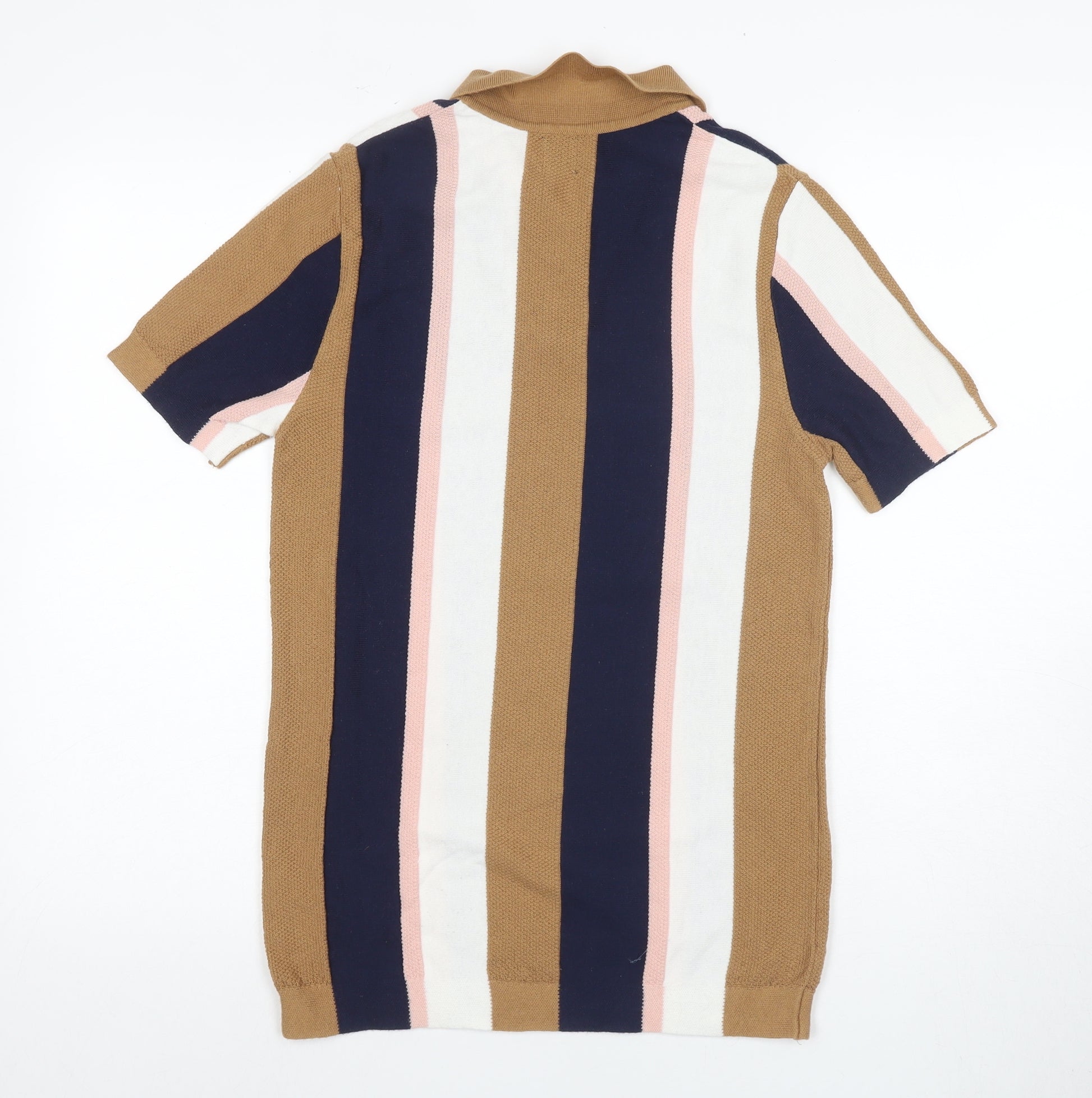 Introducing this stylish River Island men's polo, a perfect blend of comfort and flair for those who appreciate fashion-forward designs. Crafted from a high-quality mix of cotton, modal, and nylon, this polo is lightweight and breathable, ensuring you stay comfortable throughout the day. The multicoloured striped pattern adds a vibrant touch to your wardrobe, making it perfect for casual occasions in the spring and summer months.With its classic button-down collar and short sleeves, this polo effortlessly combines traditional style with a modern twist. The button accents provide a neat finish, while the relaxed fit makes it suitable for various body types. This garment is machine washable, making it easy to care for and maintain its excellent condition.Whether you're heading out for a casual outing or a laid-back weekend gathering, this River Island polo offers versatile styling options. Pair it with jeans or shorts for a smart-casual look that never goes out of style. Invest in this must-have piece to elevate your fashion game and enjoy the perfect balance of style and comfort.Don't miss out on this essential addition to your wardrobe; order now and experience the unique appeal of the River Island men's polo.
