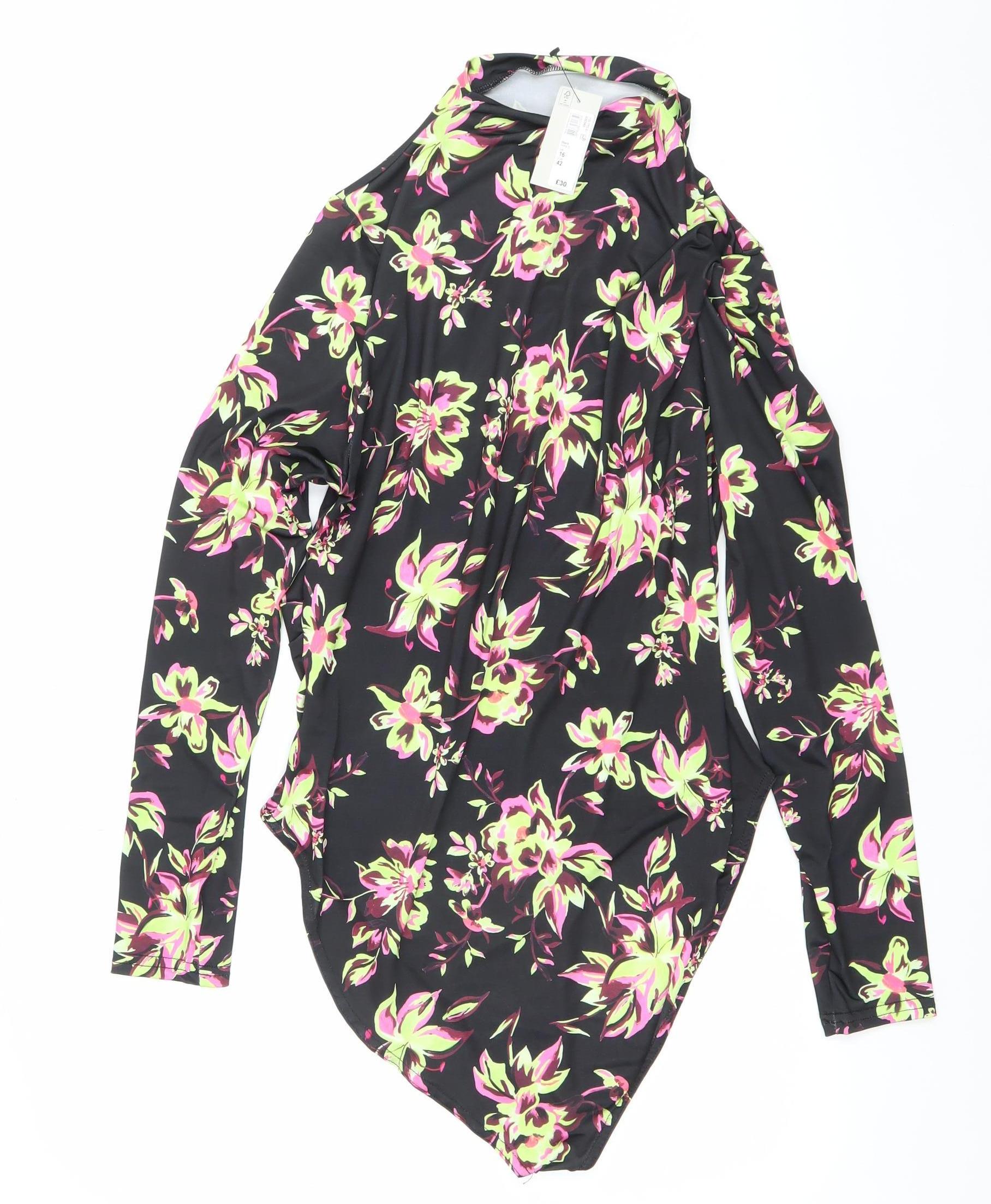 Women Black Floral Long Sleeve Bodysuit Size 16