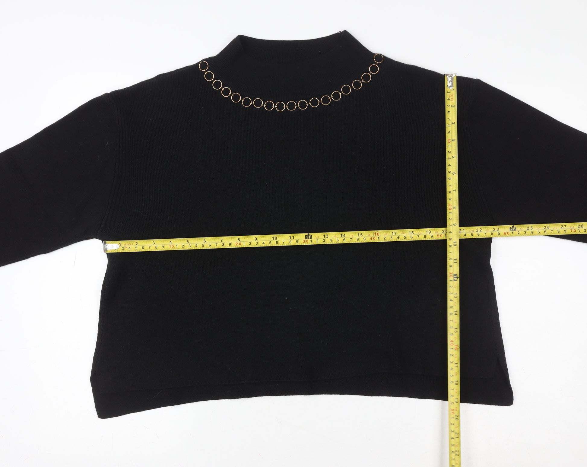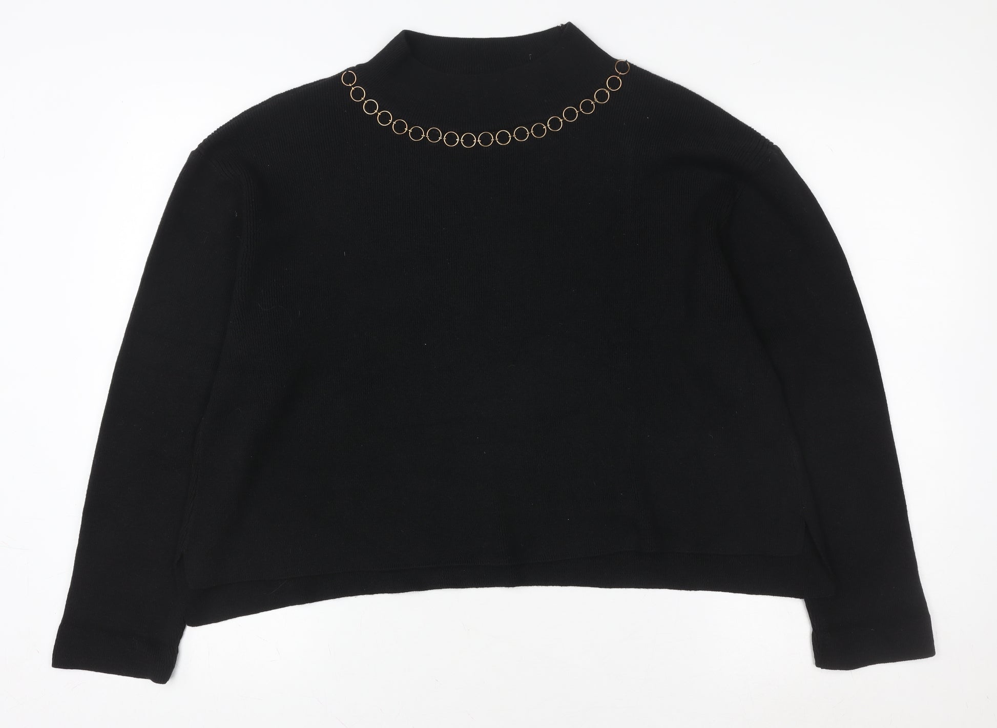 Women Black L Chain Detail Mock Neck Pullover Jumper