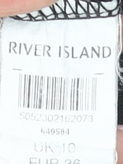 This elegant black pencil skirt from River Island is a timeless staple for any woman’s wardrobe. Designed in a classic straight and pencil style, it’s ideal for achieving a refined and polished look suitable for both professional and casual settings. The skirt is crafted from a soft blend of viscose, polyester, and elastane, offering comfort, stretch, and a flattering fit that moves effortlessly with you. Its sleek high-rise waist accentuates your silhouette while maintaining a sophisticated shape that works well with blouses, shirts, or fitted tops. The minimal design ensures versatility, making it suitable for the office, evening dinners, or smart-casual occasions. The knee-length cut adds a professional finish, while the zip fastening provides a secure and neat closure. Fully machine washable, this skirt is easy to care for and designed for repeat wear through multiple seasons — perfect for year-round styling in autumn, spring, summer, or winter. Pair it with heels and a blazer for a formal business look or dress it down with a tucked-in tee and flats for effortless chic. In excellent pre-owned condition, this piece shows only light signs of wear with no visible flaws or damage. River Island’s attention to detail and quality craftsmanship ensure this wardrobe essential retains its shape and colour wash after wash. A must-have piece for anyone looking to invest in a versatile, stylish, and easy-to-style skirt that seamlessly transitions from office days to evening outings. Whether you’re updating your workwear rotation or simply after a reliable black skirt that complements any outfit, this River Island number delivers understated sophistication and lasting appeal.