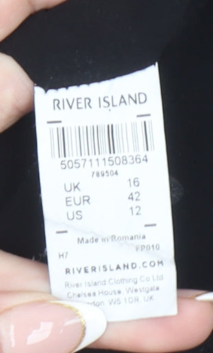 River Island Women Black Floral Long Sleeve Bodysuit Size 16