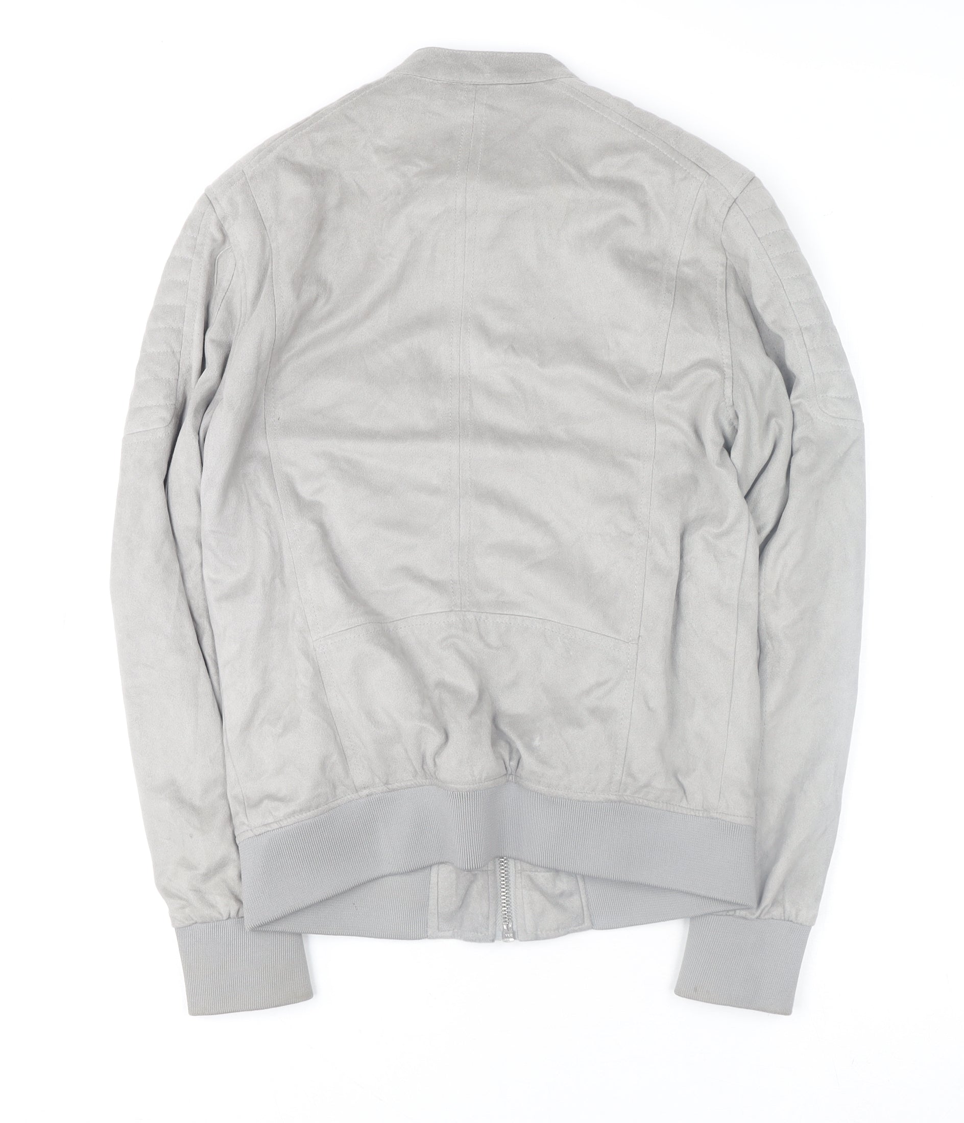 Elevate your outerwear collection with this stylish River Island women’s grey bomber jacket. Designed in a soft suede-look polyester, this versatile piece captures the essence of sleek, modern fashion while maintaining the easy comfort of everyday casual wear. The short-length silhouette creates a flattering fit that pairs beautifully with jeans, dresses, or tailored trousers for endless outfit possibilities. Featuring a secure full zip closure, this jacket ensures both practicality and style, while the front chest and side zipped pockets add functionality for carrying essentials with ease. The ribbed cuffs and hemline enhance the structured design, giving it a classic bomber shape that never goes out of fashion. The light grey tone provides a sophisticated and versatile aesthetic that complements any seasonal wardrobe. Crafted from 100% polyester with a smooth polyester lining, it offers a soft hand feel and an effortless, lightweight layer ideal for transitional weather in autumn and spring. The jacket also features subtle quilted detailing on the shoulders for a chic finish. In excellent condition with minimal signs of wear, this River Island jacket is the perfect choice for casual outings, weekend adventures, or relaxed evenings out. A versatile wardrobe staple that blends style, comfort, and quality, this piece adds a fresh and refined edge to any outfit. Upgrade your fashion collection with this timeless River Island bomber jacket — a must-have for effortless elegance and confident everyday dressing.