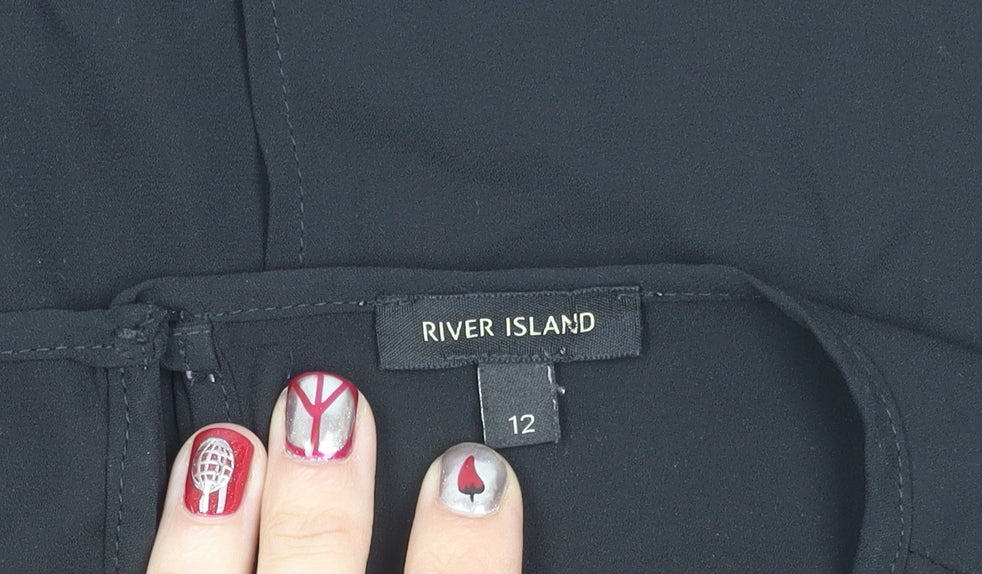 Elevate your wardrobe with this chic River Island women’s black blouse in a UK size 12. Crafted from 100% polyester, this lightweight, sleeveless design is perfect for staying stylish and comfortable in warmer weather. The sleek crew neckline enhances its versatile appeal, making it suitable for a wide range of occasions, from casual outings to smart-casual gatherings. The solid black colour ensures timeless sophistication, allowing it to be effortlessly paired with tailored trousers, skirts, or jeans for a polished look. Featuring a flattering regular fit and a subtle back button closure, this blouse offers both comfort and ease of wear, while the wide strap design delivers extra support and structure. The soft polyester fabric drapes beautifully on the body and is easy to care for, being fully machine washable. Its minimalist yet refined style provides endless outfit possibilities – layer it under a blazer for workwear chic or accessorise with statement jewellery for a more elevated evening look. Designed for the modern woman, this versatile garment will be a dependable wardrobe staple year-round, though particularly suited for the summer season. Whether you’re upgrading your work attire or looking for an effortlessly stylish weekend top, this River Island blouse delivers fashion and function in one. With no visible signs of wear and in excellent pre-loved condition, it offers superb value compared to a brand-new purchase. If you seek a flattering, easy-to-style blouse from a trusted high street fashion brand, this is a must-have addition to your collection.